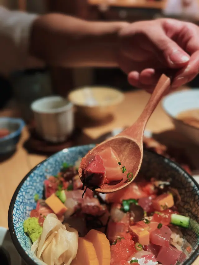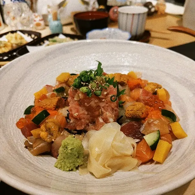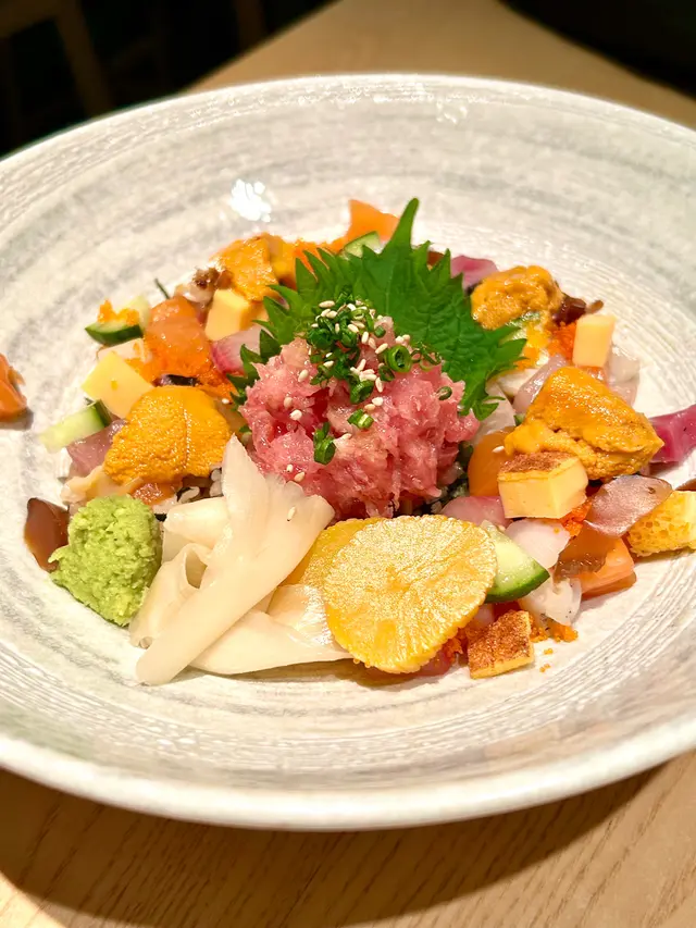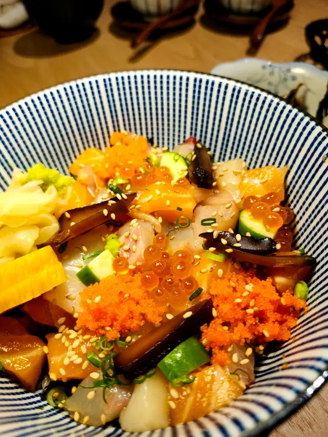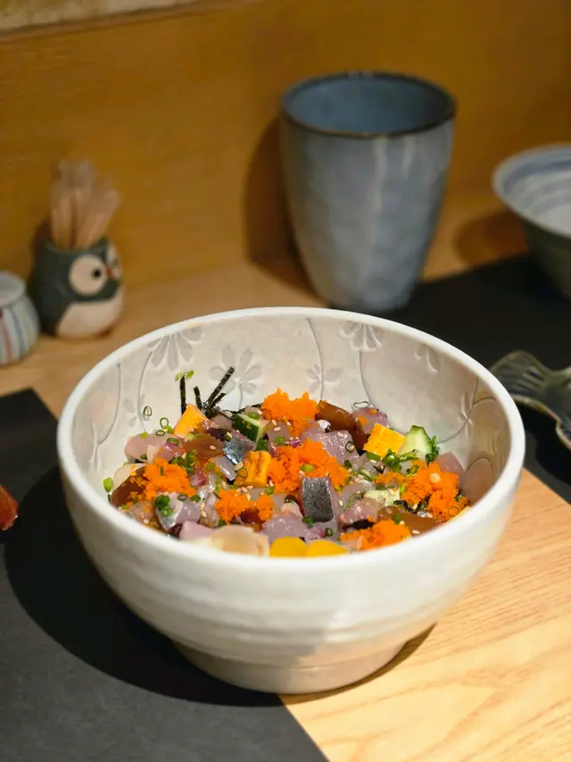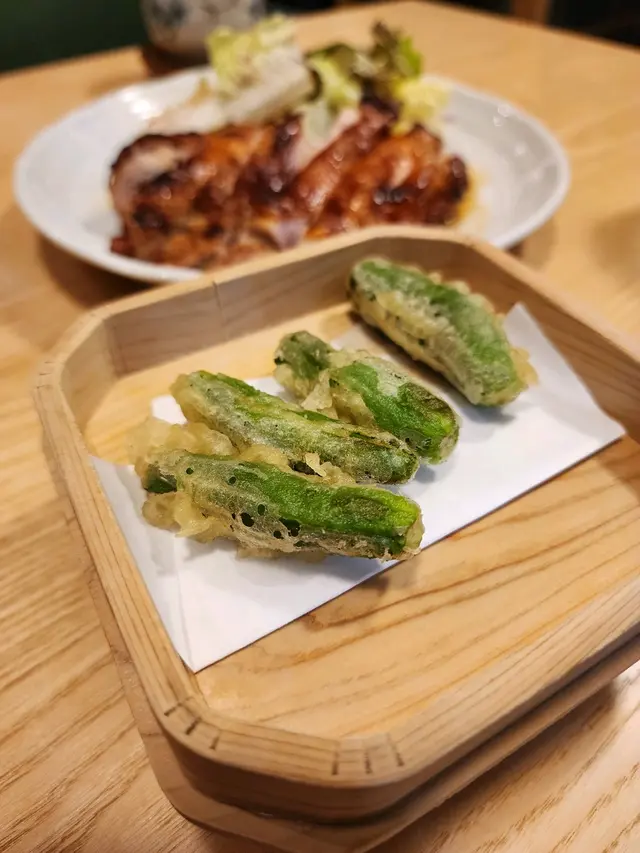 位於金鐘同灣仔之間既隱世日本居酒屋金鐘行過去近啲😆餐廳裝潢以木系為主。面積唔大,但係勝在夠舒服。lunch set好抵食❣️炸明太子青椒仔天婦羅 HK$45青椒肉質更厚,口感脆口加入明太子更為美味。粟米天婦羅 HK$52金黃酥脆既粟米天婦羅係由一粒一粒粟米整成餅,食落香甜可口。角切魚生飯定食 HK$178定食顏色繽紛,賣相非常吸引!魚生都好足料,分別有油甘魚、池魚、帶子、蟹籽、劍魚、玉子、青瓜等。油甘魚甘甜,充斥魚油香氣。劍魚肉質鮮美,富有彈性。飯本身已經調左味,味道恰好,口感層次豐富,推介。雞肉生姜燒定食 HK$138雞皮煎到香脆,肉質鮮嫩多汁,燒汁味道香甜帶有薑清新香味。燒汁同平時食既味道有少少唔同,感覺輕盈,冇咁咸膩。另外,仲有沙律菜伴碟,食曬成個飯都唔覺得好飽滯。定食配麵豉湯送沙律、前菜、雪糕。茶碗蒸,蒸蛋口感滑嫩綿密。雪糕系豆腐同埋芝麻味,滿足!查看更多