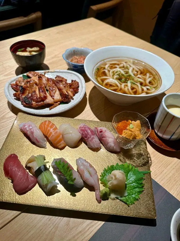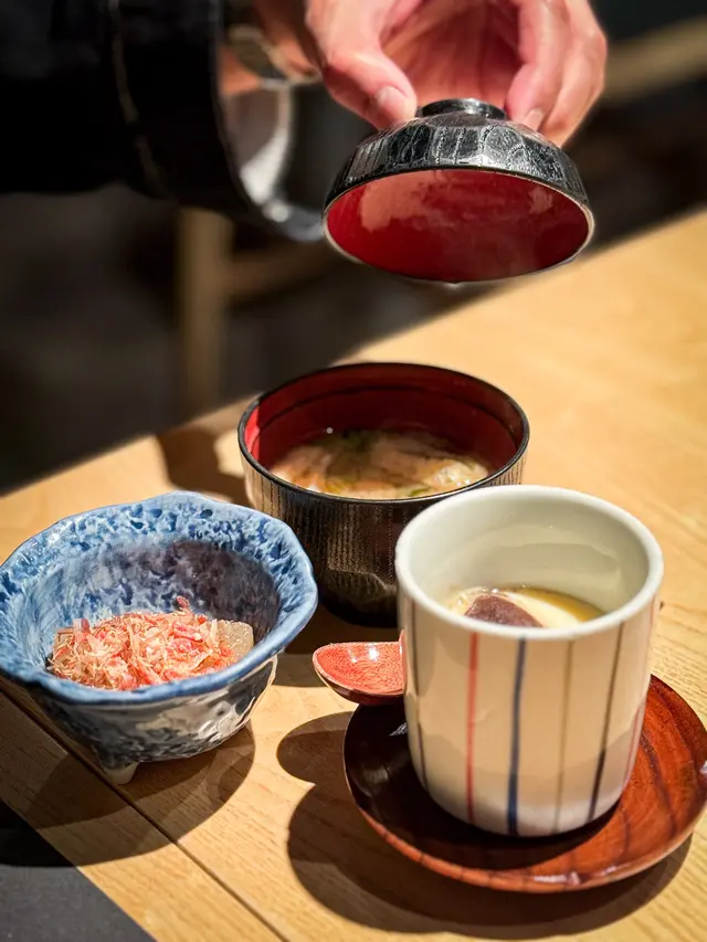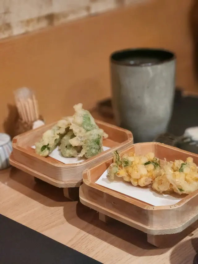 隱世日本餐廳🍴環境係日本地道風格,有omakase,亦有單點。以小店形式為主,餐具都好精緻,而且服務質素好好👍🏼🫶🏻有熱毛巾更加會經常幫我哋添茶🍵明太子釀青椒呢個非常之特別,第一次可以喺度試到,原來係明太子釀青椒入邊,味道非常之夾,雙重口感,值得一試👏🏻粟米天婦羅粟米清甜飽滿,炸完之後別有一番風味,而且炸啱啱好前菜茶碗蒸、麵豉湯、前菜(櫻花蝦豆腐)前菜都有一定水準😍🥰茶碗蒸嫩滑精選壽司定食呢款由廚師發辦😍海膽三文魚子杯食完之後勁滿足,其他壽司都非常新鮮,帶子超級甜🤩完全滿足我想食壽司🍣照燒雞扒烏冬定食呢度嘅雞扒肉質好嫩滑,而且味道非常之足夠,個雞皮整得啱啱好,配埋爽脆嘅烏冬食一流😛😛😛甜品香滑嘅豆腐雪糕作為結尾🍦六角 (灣仔)灣仔光明街6號地舖查看更多