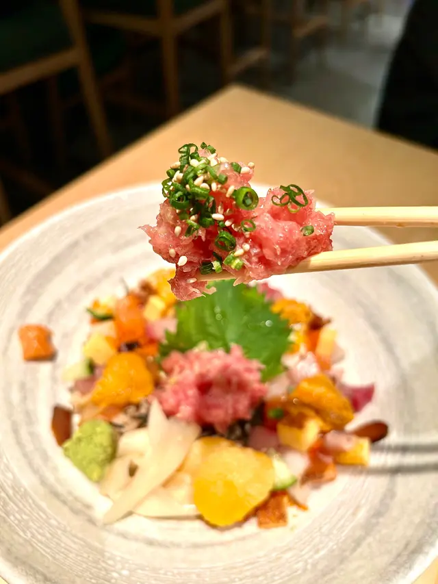 有時候也會到星街吃午餐,之前經過看見這間日本餐廳也想試試看,門口小小但被它的木質門店吸引了🪟。進入是一間小店,但感覺很重日本風格🏮,而且有Bar桌是吃廚師發辦。這裡的午膳定食選擇也挺多🍱,午餐還包括前菜、沙拉及雪糕,而且而這次點了下面款:粟米餅天婦羅 🌽明太子青椒天婦羅 兩款天婦羅也非常可口,師傅把油炸控制得很好,把兩款天婦羅的外皮也是炸得很酥脆而且不會很重油的口感,把多餘的油也吸走了,可以食到食材是很新鮮💯。另外定食有前菜、茶碗蒸及麵豉湯前茶是昆布湯汁煮蘿蔔配櫻花蝦🍲蘿蔔非常鮮甜而且昆布湯汁好配合茶碗蒸的蛋🍥🥚做得很滑,比出面店做得更出色六角魚生飯定食 $238 🌟🌟🌟🌟🌟🍣🐟Rokkaku Assorted Sashimi Rice Bowl Set 一來到的魚生飯份量是非常之大,這個價格是很值得,而且有海膽、大量吞拿魚蓉、魚子、帆立貝、三文魚、油甘魚,全部食材也是新鮮,海膽非常鮮甜,而且吃到的是鮮味,另外一讚師傳已經把醋飯調好,不用再另外加豉油,味道調得恰到好處。🍚照燒雞扒定食 $128 🐓🌟🌟🌟🌟Chicken Teriyaki Set定食配的沙拉很新鮮🥗,沙拉菜是青綠色的,另外配了沙拉汁非常讓胃口大開而且解膩。照燒雞很滑🐓,最值得一提是雞皮烤成脆面。最後定食是配雪糕🍨,這次雪糕是黑芝麻和咖啡,非常之有驚喜!✨✨✨雪糕口感很細滑,而且咖啡口感很獨特,會有一種是奶油糖的味道💯,芝麻味道很香濃。如果以一間係灣仔吃的午餐有這個質素是很值得,因為這家店做的菜也是很用心而且有要求的,是一間高質素的日本餐廳,如果在灣仔日本菜來說,也算是質素高的一家店。💯🏮查看更多