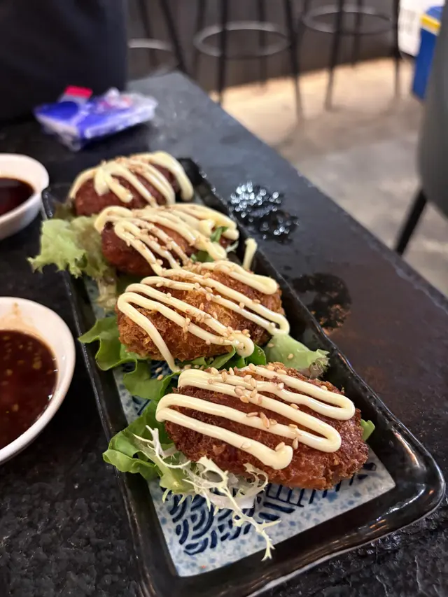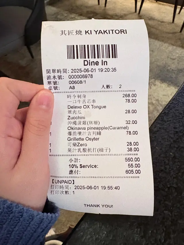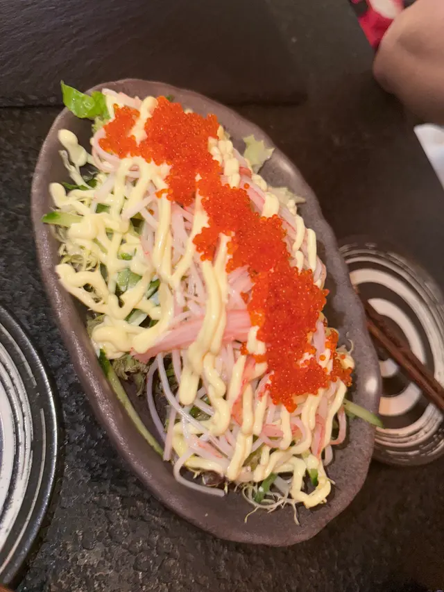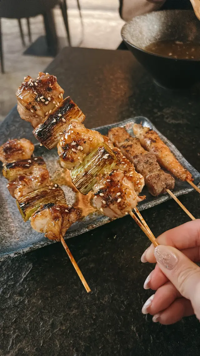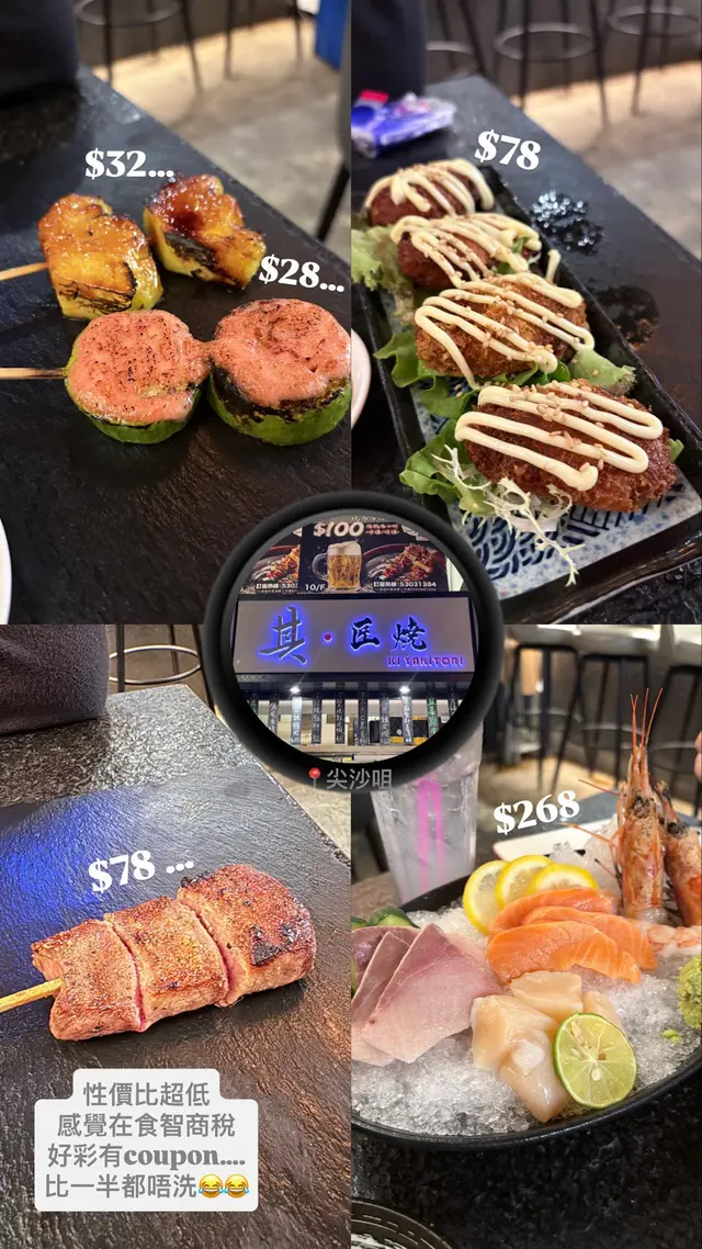 今晚同friend去咗尖沙咀呢間「其匠燒」食串燒,間舖頭唔算好大,但勝在夠晒格調,好有風味。裝修似足日本居酒屋,坐得幾舒服。啲侍應後生仔幾好禮貌,落單快,又會主動同我哋講解吓啲特色菜,服務抵讚!首先,個蟹籽沙律係一個好好嘅開始。青瓜絲同蟹柳絲都好新鮮爽脆,上面鋪滿蟹籽,一啖食落去,啲蟹籽係口裡面爆開,口感一流,清新開胃。跟住就係主角串燒環節!燒雞皮蝦絕對係全晚MVP,個諗法好刁鑽!用塊雞皮捲住隻大蝦一齊燒,雞皮嘅油香同蝦嘅鮮味完美融合,雞皮燒到脆卜卜,入面隻蝦又爽口彈牙,呢個配搭真係無得頂!風騷黑椒羊架都係必點,羊架燒到剛剛好,面層黑椒超香口,入面肉質仲保持到粉嫩多汁,一啲羶味都冇,怕羶嘅朋友都話正。一口牛舌芯係矜貴嘢,部位靚,口感爽嫩到不得了,牛味濃郁,食完真係會回味。內臟類都處理得好好,秘制汁燒雞肝燒到外層微脆,入面保持到溏心效果,醬汁甜甜哋,好惹味。雞腎同雞心都燒到恰到好處,爽口彈牙,送酒一流。三色雞頸肉都好有特色,雞頸肉嘅口感特別爽脆,值得一試。其他嘢食都水準之上,南蠻炸雞外脆內嫩,配埋個他他醬,好開胃。大啡菇燒到勁多汁,簡單用黑椒同鹽調味已經好鮮甜。牛骨髓就係邪惡之選,用匙羹舀出嚟塗落蒜蓉包度食,香濃到不得了,口感滑溜,偶爾放縱下幾正!最後食返個沖繩菠蘿(焦糖) 同其匠冷烏冬清清喉嚨,菠蘿清甜多汁,表面層焦糖脆脆哋;冷烏冬冰涼彈牙,係完美嘅結局。總括來講,「其匠燒」嘅串燒真心高質,師傅手勢好,用料新鮮,款式又多。環境同服務都令人滿意,係一間會令人想Encore再食嘅誠意小店!…查看更多
