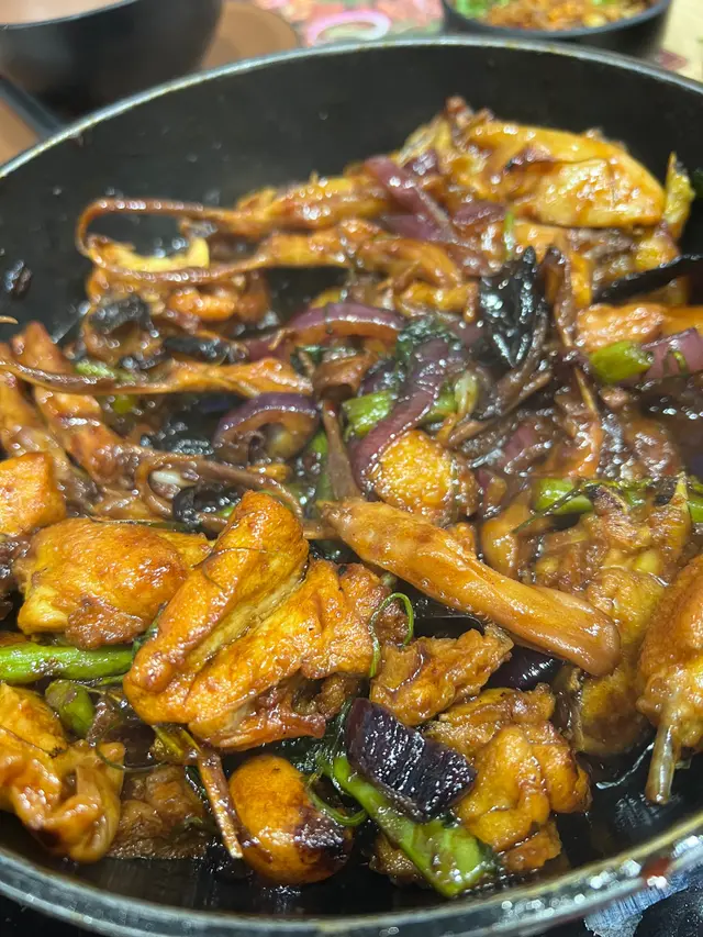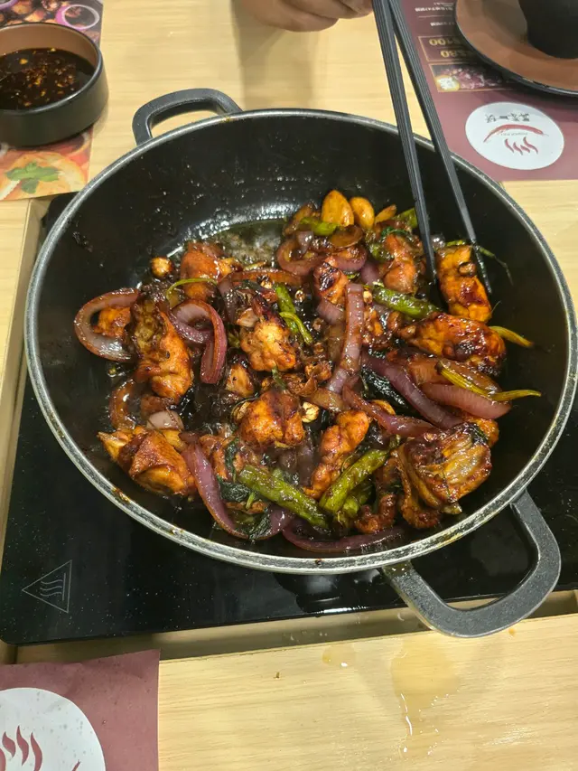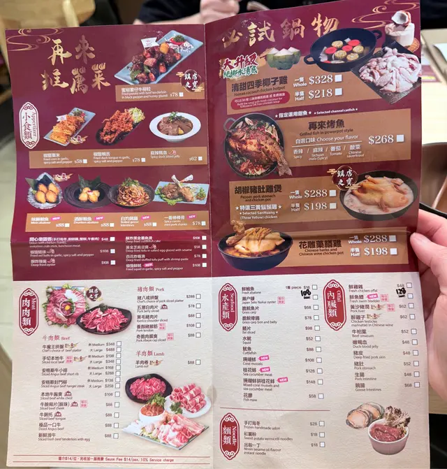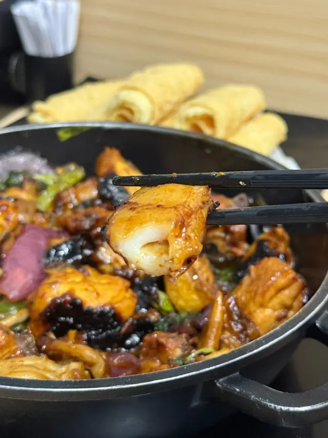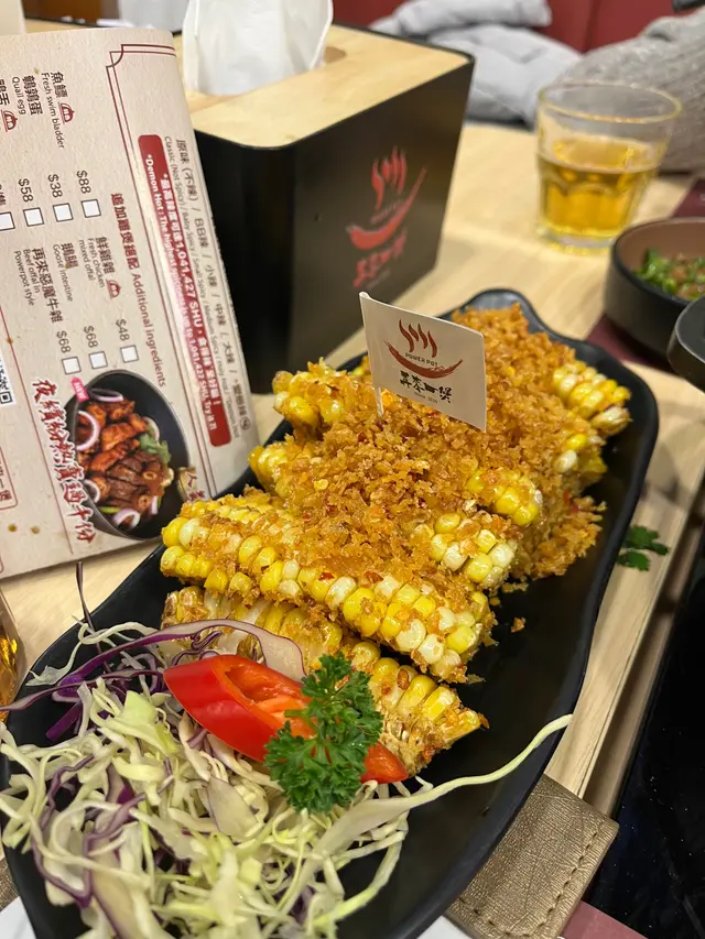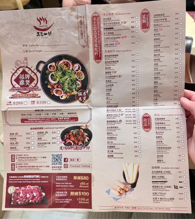 今次我地去左大西北既元朗呢邊食一間朋友介紹既雞煲火鍋小店,呢間餐廳雖然個地點唔起眼,但係好多人食,唔book位基本上好難等位,因為佢地本身唔算多位,所以我地都有book定先去食😌招牌魔鬼雞煲(半隻)($198)佢地既雞煲係以印度魔鬼椒去整,最勁既變態辣要睇免責聲明先好試,而佢地既辣度比一般既雞煲店辣,平時食開中辣就建議小辣都夠,我地就叫左bb辣,唔算好勁,上雞煲時佢個辣椒味真係好香,有小小攻鼻,但食落冇相像中咁辣,可能因為有個心理準備,同埋雞煲汁帶有少少甜,中和番個辣度,雞件好入味,食完可以加湯打邊爐🐥🌶️椒鹽粟米($58)我地叫左個小食椒鹽粟米,佢個蒜好香,又夠咸,跟住條粟米本身又超甜,好好食🌽本地手切牛(例牌)($ 198)佢手切牛既紋理幾靚,個口感唔錯,唔會太肥,牛味相對都重🐮爆汁牛筋丸(一份)($68)個牛丸真係爆曬汁係入面有少少肥膏咁,半份$48得4粒,一份抵食好多,同埋都真係好食,好彩叫左一份😋手工韮菜餃($42)手工餃食得出係自己包既,個皮偏簿,個餡既肉鮮味多汁🥟珍寶凍檸茶($38)呢度既檸檬茶超大杯,夠2個人飲🍹呢間小店都真係幾好食,佢個辣係過癮得黎又特別,火鍋配料質素都好好,同埋個椒鹽粟米都好食,黎到唔止打邊爐,熟食都值得叫,特登過黎食都冇令我地失望🥰…查看更多