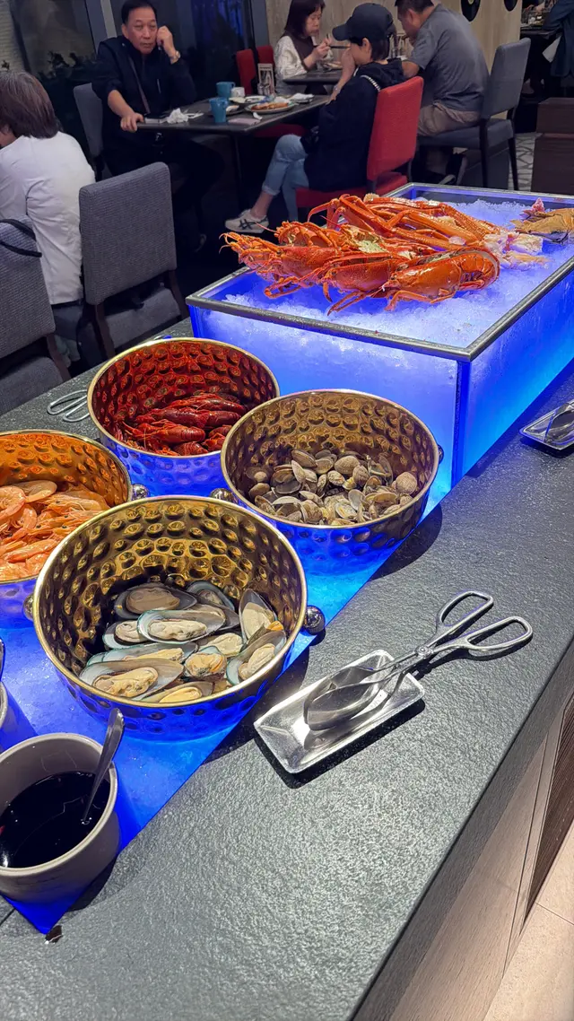 海景自助餐早排去左食自助餐有咁靚嘅景色都係四百零蚊一位食物質素都算唔錯成間餐廳長方形咁樣基本嘢都會有刺身 沙律 凍海鮮 牛扒幾款嘅食物比較推薦凍龍蝦雖然係比較細隻但係肉質都係爽彈 帶少少膏不過相比之下呢隻琵琶蝦就好食得多真係食得出鮮甜嘅味道最尾都攞多咗幾隻嚟食呢個牛肋肉燒得啱啱好三文魚同磯煮鮑魚食得過仲有大蝦係即刻係鐵板燒咁啱呢排仲喺香港懷舊主題有玻璃樽裝嘅汽水可以飲仲有啲特色飲品最後有香港特色甜品芝麻卷,楊枝甘露凍,豆腐花等等…查看更多