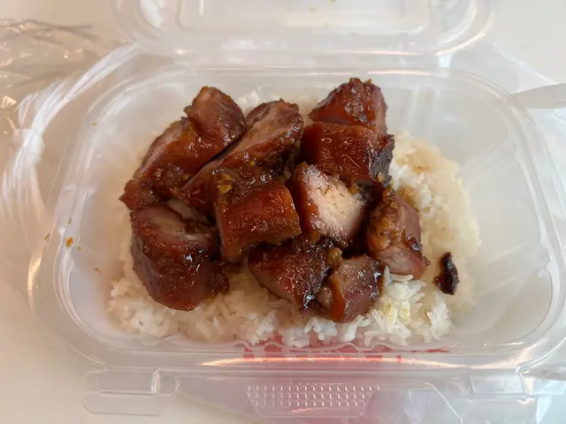 首次寫食評,希望救得一個得一個依間嘢真係超級極大伏 (😵伏到唔可以用普通嘅詞語去形容)幾年前幫襯過,都覺得係below average。今日約五點經過,就再去試個叉燒燒肉飯($42),個飯嚟到,個賣相已經唔想食(真係無mood影低佢),個樣和質素一定差過兩餸飯極多,「碟飯」有五嚿瘦叉,四嚿七分瘦燒肉。先講瘦叉,睇個顏色四嚿同一批,極「鞋」,另外一嚿搭頭頭尾尾,衰到多筋食唔到然後燒肉,都係好「鞋」,同埋有幾粒淋同硬身的燒肉皮(已經唔記得係唔係每嚿都有皮,😓又淋又硬真係唔要皮好過)成個飯一定差過兩餸飯同埋果啲二幾蚊一個外賣雙併燒味飯。