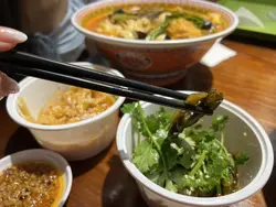 呢間叫「冒喜」的店,名副其實。一碗熱辣辣冒菜,真係食到人都開心啲。酸辣湯底滾住滾住,暖到心入面。今次點咗個「吉祥套餐」,六款配料配土豆粉,再加兩款涼拌小食,從頭到尾都係香、辣、脆、滑之間跳舞 💃。🥢 開胃兩小碟:海味 x 地味日式芥末海茸拌:第一啖就係醒神!海茸冰涼爽口,帶住微微脆感,芥末嘅嗆辣係一下衝上鼻,唔係辣,是提神 🧠🌊🌿。中和咗啲重口味主食之前,先幫你 reset 舌頭。涼拌酸辣土豆絲:呢碟就好親切,土豆絲切得幼身,酸辣開胃,蒜香撲鼻 🧄🥔,每啖都脆卜卜。呢種傳統味道,永遠唔會錯。正餐主角:吉祥套餐 + 土豆粉一碗紅通通嘅湯底上枱,油花漂浮,香氣四溢,辣味未入口已經聞到 🔥。酸辣湯唔係死辣,係有層次嘅酸香開場,後勁微麻、暖喉但唔燥。拌入爽滑嘅土豆粉,煙韌得嚟唔會黐牙,一夾起就感受到「拉絲級」彈性 🧵🍜。六款配料各有角色:潮汕手錘牛肉丸:咬落去超彈牙,肉香四溢,係實打實手打感🐄💥。墨魚丸:鮮味十足,咬開有種彈弓感,唔腥,好乾淨 🦑。午餐肉:罪惡感小爆發,鹹香吸晒湯汁,每次冒菜都唔可以冇佢🥓。滑雞片:雞肉滑到可以當豆腐咁食,冇渣又入味 🐔。貢菜:爽脆係佢最大特色,耐煮都唔爛,吸湯吸得啱啱好 🥬。土豆片:切得薄,浸咗湯之後仲保持住輕微脆感,好神奇🥔。而最鍾意嘅係:整碗湯唔會死鹹,反而愈食愈順,最後連湯都忍唔住飲埋幾啖 🥄🔥。 總結一下|一碗酸辣湯底,裝住六重幸福冒喜嘅「吉祥套餐」唔止係餸多,係每款都有心機,每啖都有驚喜。土豆粉煙韌得嚟唔 heavy,湯底酸辣帶勁又唔滯,食完唔會攰,反而係滿足咁笑住離場 😌。兩款小食又清新醒胃,同主餐形成一種味覺上的前後呼應,食得好完整,冇一樣係陪襯。…查看更多