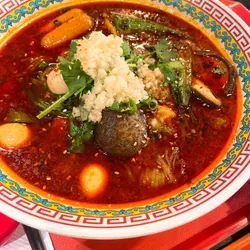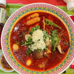 店內枱距夠闊,我同阿媽坐四人卡位仲可以擺袋唔逼夾!牆上大大個霓虹圓圈logo好搶眼,襯埋懷舊港式海報,阿媽即刻拎手機打卡📸。燈光唔會太暗又唔刺眼,望落碗菜都特別靚仔。最正係QR code落單,撳兩撳就搞掂,連阿媽都讚方便!🐟秘製藤椒魚皮 ❤️❤️❤️❤️ 冰鎮上枱仲冒住煙~魚皮厚身又捲曲,咬落"索索"聲爽到震!藤椒油夠香但唔嗆喉,後尾仲有微微麻感,阿媽怕辣都偷食咗三件😆 如果多啲青瓜絲墊底就更完美~ 🍖肉食王套餐 ❤️❤️❤️❤️❤️ 重慶麻辣湯小辣溫和帶甜,薯粉吸晒湯精華滑溜溜~驚喜係滑雞片!以為會老但竟然嫩過BB肌膚🐣,連皮食超香口。五花腩薄到透光,一涮即捲,油脂化開唔膩喉。魚腐似小雲吞咁脹卜卜,咬開爆鮮魚香,同麻辣湯撞出火花💥🥬素食王套餐 ❤️❤️❤️❤️ 清雞湯真係無呃人,飲落有膠質黏唇感!蓮藕片脆到似食薯片🍟,冬菇厚肉仲有菇汁爆出。火鍋麵似幼版烏冬,掛湯力max,阿媽話唔使點醬都夠味~唯獨萵筍切得太薄,煮耐咗有啲消失咁😅 人均$200有找,份量夠我哋打包宵夜!🌙 阿媽難得主動話要encore,特別鍾意個自助落單系統同舒適環境。雖然甜品選擇少,但兩個鍋底都足料得嚟唔口渴,食完成個口唔會油淋淋~👏…查看更多