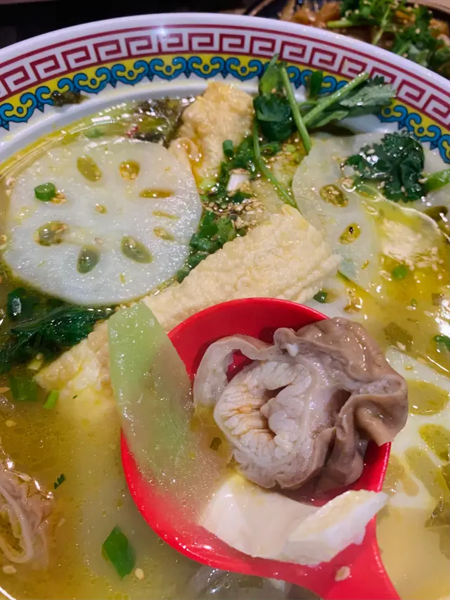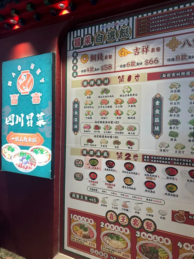 雖然小編唔係好食得辣🌶️,但係宜家冒菜好流行,亦有唔同類型既湯底🥣可以揀就鍾意左食🤩 其實等於係一人火鍋🍲,只係有人幫你逐碗煮好~ 全部都惹味香口,又有好多配料可以揀,價錢唔貴~(5 😍 係滿分,🤩係半分)八寶套餐 (8款食材) - $72 (好味指數:😍😍😍😍🤩)生椰番茄湯 🥥🍅🥣 - +$5一向都鍾意食番茄湯底 🍅🥣 今次試下新既生椰番茄湯 🥥🍅🥣 係用左生椰子肉🥥同埋酸甜可口既蕃茄🍅,以香氣四溢、濃郁既雞高湯湯膽🐥🥣做底,味道清新香甜,開胃啲又有營養~特濃清雞湯 🐥🥣呢個就係湯膽,係以豬骨🍖、鮮雞🐥、赤肉、白胡椒⚪️等香料熬6個鐘而成,清澈唔油膩,味道清甜又可以提鮮,可以感受到食材既原味道~潮汕手搥牛肉丸 🐮🟤 所謂既手搥就係用鐵棍敲打牛肉🐮,分解纖維,因為過程無機械摩擦同無產生熱力,所以保留到風味🤩 所以食落彈牙爆汁,牛味香濃,真係幾唔錯~貴州丁家脆哨 🔥🐷用左肥肉比較多既豬肉🐷,跟住切成肉丁,再放入去豬油🐷炸🔥,同時加醬油提香同埋甜酒釀上色,炸到啡色就搞掂~ 因為炸既時候去緊啲油,肉又吸收左油香,所以味道豐腴又酥脆,令整體香口啲~蟹籽蟹粉丸 🟠🦀蟹粉丸🟠係由墨魚同魷魚肉🦑製成既,裡面再包左鮮黃色既蟹籽🟡,入口味道鮮味香甜,蟹籽🟡脆卜卜,鮮味濃郁又juicy,幾好食😋美國肥牛 🇺🇸🐮 - +$3唔會好似坊間嗰啲咁肥,肥瘦適中,口感柔嫩軟滑,有幾肥美既油香,牛味🐮幾香濃,同時索埋湯底🥣既精華就更加香口同好食😋五花腩片 🐷 - +$3油花豐富,肉味濃郁,口感軟嫩juicy又有咬口,同時索埋湯底🥣既精華就更加香口同好食😋滑雞片 🐥幾厚身,口感嫩滑亦帶有少少肥,雞味🐥幾濃郁,唔會有雪味❄️豬大腸 🐷 - +$3唔會有腥臭味,洗得幾乾淨~ 煮完幾有咬口但唔會韌,亦有豐腴既油香都唔錯~魚腐 🐟🟨先將魚肉🐟打到起膠,撈埋生粉同水💧攪勻,跟住再炸到金黃色,口感軟滑甘甜,味道幾鮮味,有清香既魚味🐟冰豆腐 🧊⬜️冰豆腐🧊即係蜂巢豆腐🐝⬜️,將啲豆腐⬜️雪到變冰🧊,跟住再解凍,豆腐⬜️就會有唔同大細既氣孔,豆味🟡香濃啲之餘,亦可以索多好多湯汁同精華幾正🤤娃娃菜 🥬幾新鮮,煮完味道清甜,軟腍多汁白蘿蔔片⚪️🥕白蘿蔔片⚪️🥕切既大細啱啱好,質感爽口,味道清甜多汁,亦都幾索味~豆卜 🟨 顏色金黃,脹卜卜咁係四方球形既,裡面好似海綿🧽咁,吸晒湯底🥣既精華,味道清香有咬口都幾好鮮冬菇 🍄🟫口感軟腍juicy,有芳香馥郁既香味都幾好食😋芋絲質感爽口,而且一樣索曬湯底🥣既味道幾正火鍋麵 🍜 - +$5火鍋麵 🍜真係吸湯🥣神器,索曬湯底🥣既精華,入味香口,質感Q彈,有淡淡既麵粉香🤩涼拌酸辣土豆絲 🌶️🥔 - $28 (好味指數:😍😍😍😍🤩)宜家天氣越黎越熱🥵 食翻個涼拌菜就幾舒服😌 個土豆絲🥔唔會切得好幼,口感軟糯綿密,酸酸辣辣🌶️,清爽開胃🤤涼拌酸麻辣蓮藕片 🌶️ - $28 (好味指數:😍😍😍😍)另一個涼拌小食就要左蓮藕片,味道清新,口感爽脆,麻既味道停留喺嘴入面,辣🌶️得黎幾惹味~桂花蜜烏梅冰粉 🌼🍯🧊🟫 - $18 (好味指數:😍😍😍😍)食完咁多辣野🌶️都想食啲凍冰冰既野解辣🌶️,呢個冰粉🧊🟫就啱啱好👍🏻 裡面有爽彈微酸既山楂QQ果凍 🔴🍮、香甜滋潤既桂花蜜糖水 🌼🍯同埋酸酸地爽滑既烏梅冰粉,清涼解渴又可以解辣🌶️,有芬芳既烏梅香味,感覺幾爽😌洛神花山楂蘋果 🌺🔴🍎 - $9 (好味指數:😍😍😍😍)洛神花🌺可以抗氧化同幫助消化,而山楂有豐富既維他命C,又可以降血脂,加上兩樣料都酸酸甜甜咁,連埋芳香既蘋果🍎,就更加清新又可以解油膩,加上食完辣野🌶️之後配杯凍冰冰🧊既野飲真係正~酸梅青檸烏龍茶 🍋🟩☕️ - $9 (好味指數:😍😍😍😍)酸梅同青檸🍋🟩呢個配搭幾特別,酸梅味道混合左甜酸鹹,配埋清新既青檸🍋🟩同甘香既烏龍茶☕️,感覺酸爽,加上凍冰冰🧊咁就更加消暑解渴,又可以清熱解毒😜好味指數:😍😍😍😍🤩推介指數:😍😍😍😍🤩…Read More