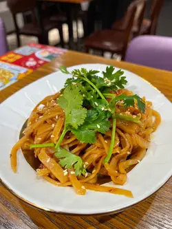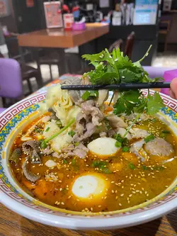 今日係觀塘上完堂,行過見到呢間新既餐廳,一於就試下佢呢到主要都係食湯面,但見到佢既套裝好抵食,8餸湯面都係68蚊,湯底辣同唔辣都有唔少選擇首先,叫左個小食食下先,試咗個杏鮑菇,杏鮑菇口感幾滑嫩,加埋酸酸辣辣既汁,真係好開胃,好適合做前菜我地一人叫左一碗面,第一碗就試左佢呢到招牌既青二荊條湯底,其實應該就係四川辣椒,食落係好香口,辣味都好足,土豆粉食落就比較滑,配菜叫左蟹柳、肥牛、胡椒豬肚、牛黃喉、黑毛肚、油麥菜、白蘿蔔,仲有好特別既貴洲丁家脆哨,配菜既種類都好多,仲要有好多都係出面比較少見,好似胡椒豬肚同埋牛黃喉咁,而且都好爽口煮得幾好食,最特別係個脆哨,真係第一次聽呢種食物,食落細細粒似係炸過既肥肉,好香口好脆!第二碗就係蕃茄湯底,蕃薯粉就比較煙韌,配菜就叫左手搥牛肉丸、滑雞片、滑牛肉、豬大腸、黑毛肚、金菇、冰豆腐同竹輪卷,手搥牛肉丸好出色,好彈牙,而且好有牛味,一定要試!飲品方面,呢到有D健康D既我就揀左洛神花山楂蘋果,味道清新,酸酸甜甜,好解渴,另外仲有玻璃樽裝汽水飲最後,仲食咗桂花蜜烏梅冰粉作為甜品,呢個甜品清新可口,酸酸甜甜,作為解膩真係一流整體來講,呢到真係一個好地方,一黎好抵食,二黎食物都煮得好食,不失為一個好選擇…查看更多