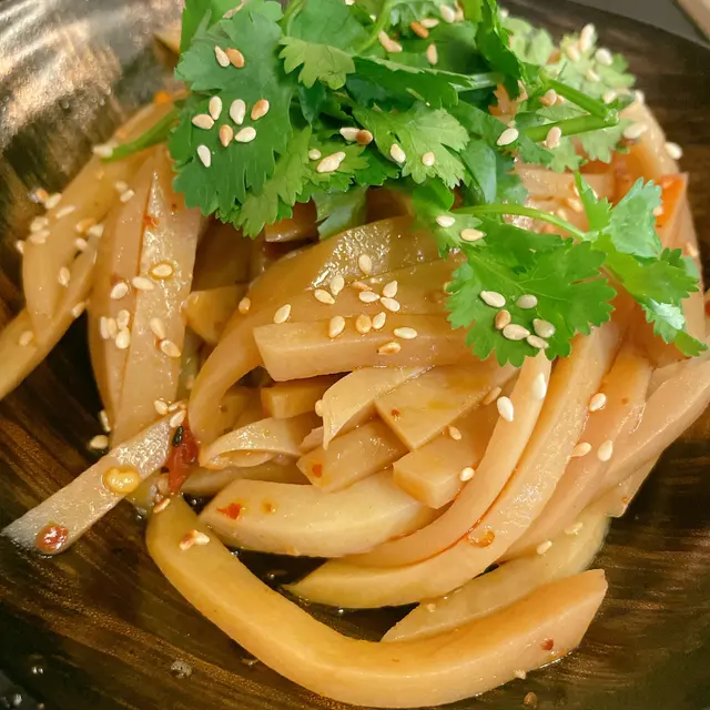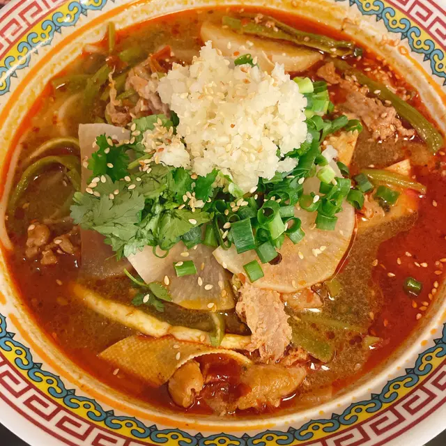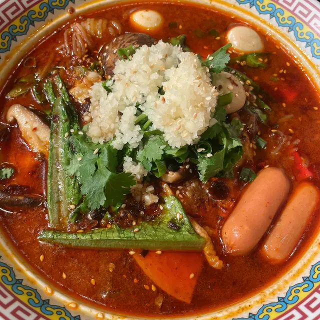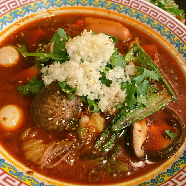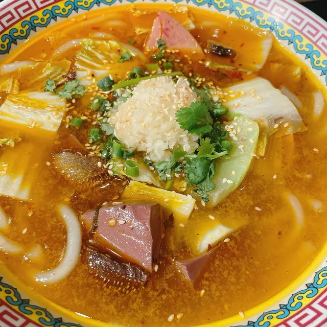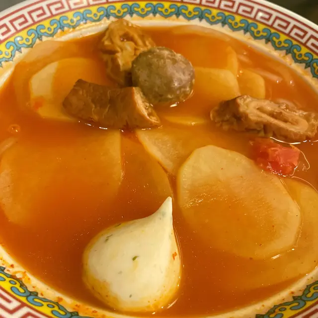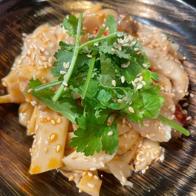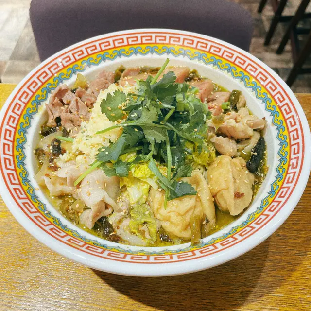 今日係觀塘上完堂,行過見到呢間新既餐廳,一於就試下佢呢到主要都係食湯面,但見到佢既套裝好抵食,8餸湯面都係68蚊,湯底辣同唔辣都有唔少選擇首先,叫左個小食食下先,試咗個杏鮑菇,杏鮑菇口感幾滑嫩,加埋酸酸辣辣既汁,真係好開胃,好適合做前菜我地一人叫左一碗面,第一碗就試左佢呢到招牌既青二荊條湯底,其實應該就係四川辣椒,食落係好香口,辣味都好足,土豆粉食落就比較滑,配菜叫左蟹柳、肥牛、胡椒豬肚、牛黃喉、黑毛肚、油麥菜、白蘿蔔,仲有好特別既貴洲丁家脆哨,配菜既種類都好多,仲要有好多都係出面比較少見,好似胡椒豬肚同埋牛黃喉咁,而且都好爽口煮得幾好食,最特別係個脆哨,真係第一次聽呢種食物,食落細細粒似係炸過既肥肉,好香口好脆!第二碗就係蕃茄湯底,蕃薯粉就比較煙韌,配菜就叫左手搥牛肉丸、滑雞片、滑牛肉、豬大腸、黑毛肚、金菇、冰豆腐同竹輪卷,手搥牛肉丸好出色,好彈牙,而且好有牛味,一定要試!飲品方面,呢到有D健康D既我就揀左洛神花山楂蘋果,味道清新,酸酸甜甜,好解渴,另外仲有玻璃樽裝汽水飲最後,仲食咗桂花蜜烏梅冰粉作為甜品,呢個甜品清新可口,酸酸甜甜,作為解膩真係一流整體來講,呢到真係一個好地方,一黎好抵食,二黎食物都煮得好食,不失為一個好選擇…查看更多