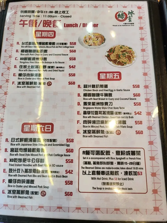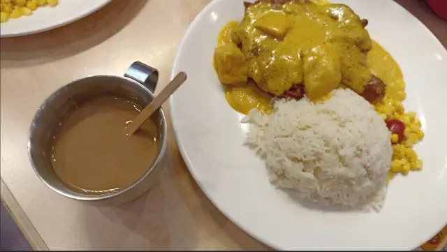 下午茶餐由兩點至六點,通常我都會三點半後入坐。因為避開中午飯市,到時冇咁多人通常都有位坐。 這間餐廳係掃碼落單。落單後都好快出厨房。咖喱雞髀飯可以加多汁。咖啡都可以加多啲奶。 椰香咖喱汁好香,嗰咖喱汁不是太辣,一般香港人都可接受,雞髀大隻,炸得香脆好嫩滑,有薯仔番茄粟米配菜。咖啡熱辣辣好香濃。 好似我噉樣三四點先食飯呢個下午茶就啱啱好!其實餐廳裏邊都有好多特價嘅野食。 特價有蒸魚啊有冰室白灼蝦半斤啦,金牌燒乳鴿,豉汁或/清蒸時日鮮魚,都係抵食架!
