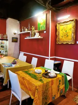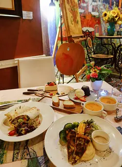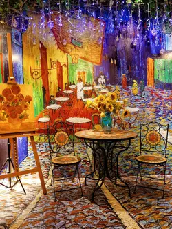 走入凡高廚房,第一眼就會覺得自己行咗入一間小巧的畫廊😍 四周牆身都滲滿梵高嘅色彩元素——星空的筆觸、向日葵的暖黃——連磚瓦都似乎擁有自己嘅故事❤️ 餐廳內仲有個超大嘅「打卡位」,好似原寸放大嘅畫布咁,影相一流,保證可以洗爆社交平台🤭 角落仲擺咗張桌球枱,食完飯仲可以輕鬆玩一局,就好似嚟咗朋友屋企咁自在😚 餐牌方面,最值得一提嘅,係佢哋嘅「梵高畫布蛋糕餐」✅ 上檯嘅係一件雪白似畫布嘅蛋糕,旁邊配埋幾款食用顏料,同畫筆一樣嘅小工具🌟 食客可以親手揮灑即興靈感,畫一朵向日葵,或者簡單幾筆星空,分分鐘畫功唔重要,重點係享受過程😆 ——呢個環節真係勁有趣,食之前已經多咗一份藝術參與感😘 至於主菜推薦,海鮮燴飯飯粒吸滿海鮮精華,口感綿滑得嚟又唔會太「淋」,每一啖都有蝦同青口嘅鮮甜味👍 墨汁海鮮意粉都唔錯🥰 黑漆漆嘅意粉一咬落去居然好清爽,大蝦、帶子相當搶鏡,係一個帶少少神秘氣息嘅菜式☺️ 有興趣可以叫返件朱古力心太軟😘 唔使多介紹,一切開就有香噴噴嘅朱古力味四溢,配埋雪糕食,完美收尾🤤 飲品方面,點名要試雞尾酒❣️ The Starry Night🥳 用藍橙酒打底,撞上檸檬嘅清新,再加梳打水嘅氣泡感,入口微甜清爽,顏色迷人,望住杯入面嘅湛藍,就好似將夜空握喺手中😎 …查看更多