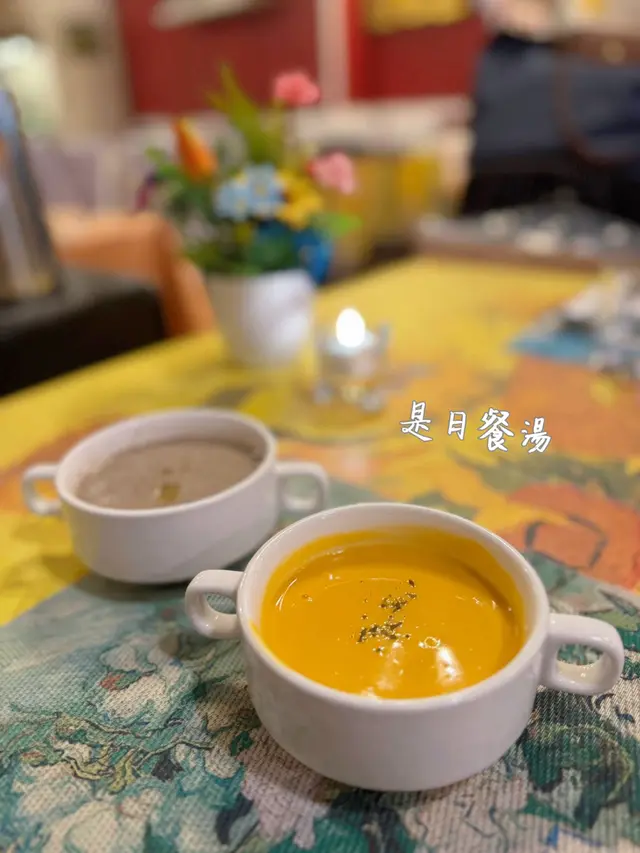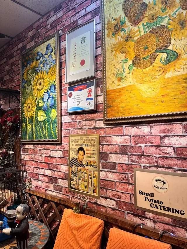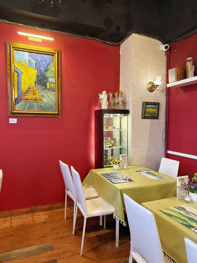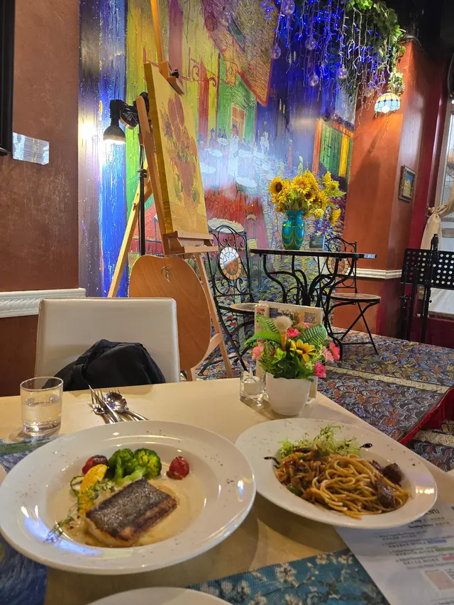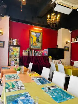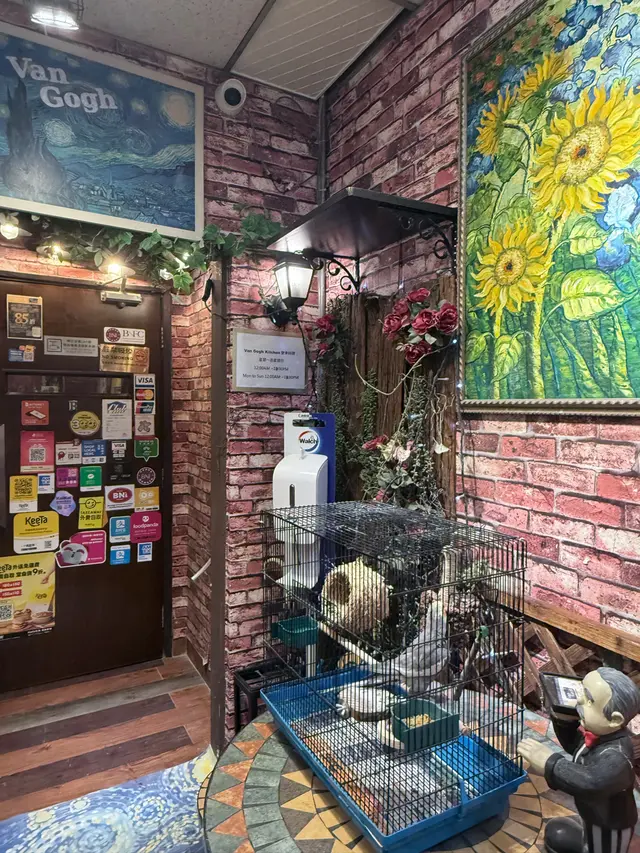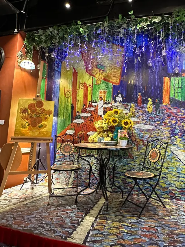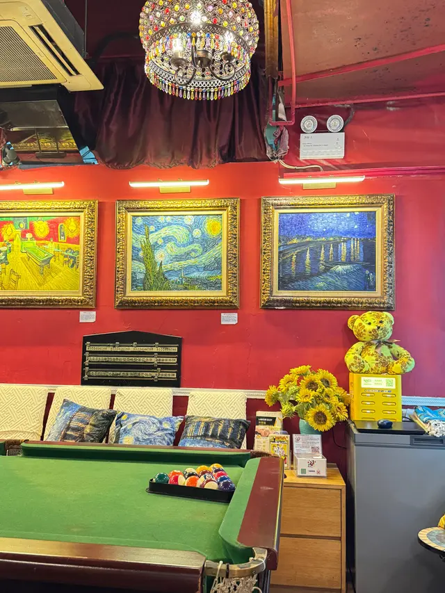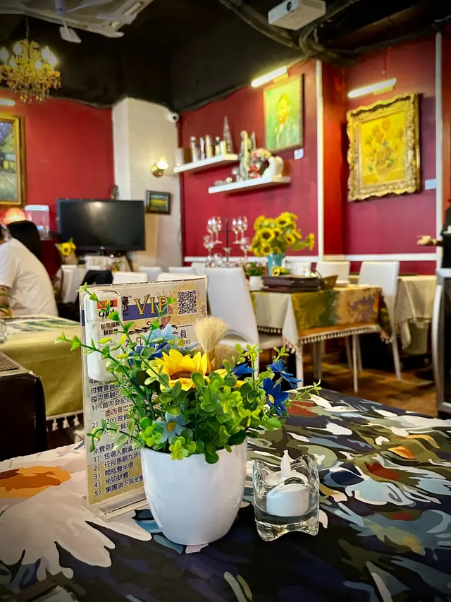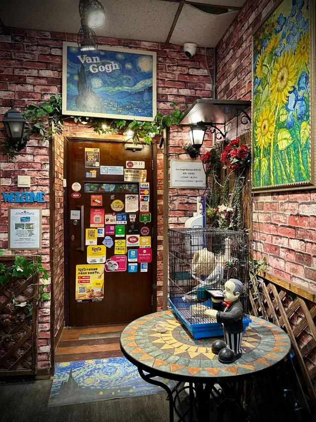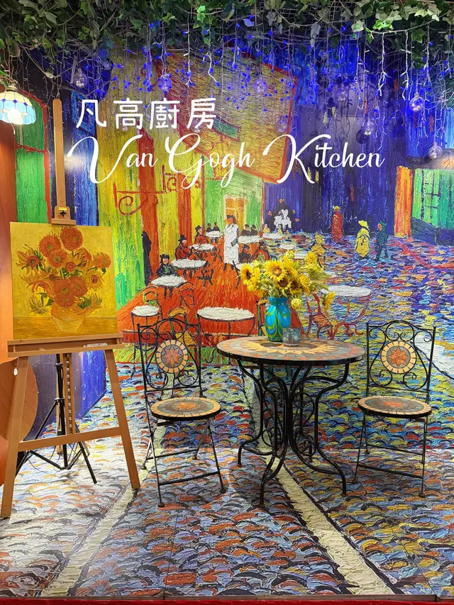 走入凡高廚房,第一眼就會覺得自己行咗入一間小巧的畫廊😍 四周牆身都滲滿梵高嘅色彩元素——星空的筆觸、向日葵的暖黃——連磚瓦都似乎擁有自己嘅故事❤️ 餐廳內仲有個超大嘅「打卡位」,好似原寸放大嘅畫布咁,影相一流,保證可以洗爆社交平台🤭 角落仲擺咗張桌球枱,食完飯仲可以輕鬆玩一局,就好似嚟咗朋友屋企咁自在😚 餐牌方面,最值得一提嘅,係佢哋嘅「梵高畫布蛋糕餐」✅ 上檯嘅係一件雪白似畫布嘅蛋糕,旁邊配埋幾款食用顏料,同畫筆一樣嘅小工具🌟 食客可以親手揮灑即興靈感,畫一朵向日葵,或者簡單幾筆星空,分分鐘畫功唔重要,重點係享受過程😆 ——呢個環節真係勁有趣,食之前已經多咗一份藝術參與感😘 至於主菜推薦,海鮮燴飯飯粒吸滿海鮮精華,口感綿滑得嚟又唔會太「淋」,每一啖都有蝦同青口嘅鮮甜味👍 墨汁海鮮意粉都唔錯🥰 黑漆漆嘅意粉一咬落去居然好清爽,大蝦、帶子相當搶鏡,係一個帶少少神秘氣息嘅菜式☺️ 有興趣可以叫返件朱古力心太軟😘 唔使多介紹,一切開就有香噴噴嘅朱古力味四溢,配埋雪糕食,完美收尾🤤 飲品方面,點名要試雞尾酒❣️ The Starry Night🥳 用藍橙酒打底,撞上檸檬嘅清新,再加梳打水嘅氣泡感,入口微甜清爽,顏色迷人,望住杯入面嘅湛藍,就好似將夜空握喺手中😎 …查看更多
