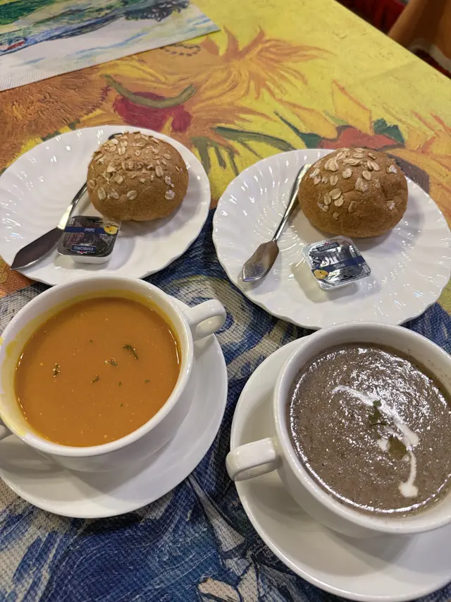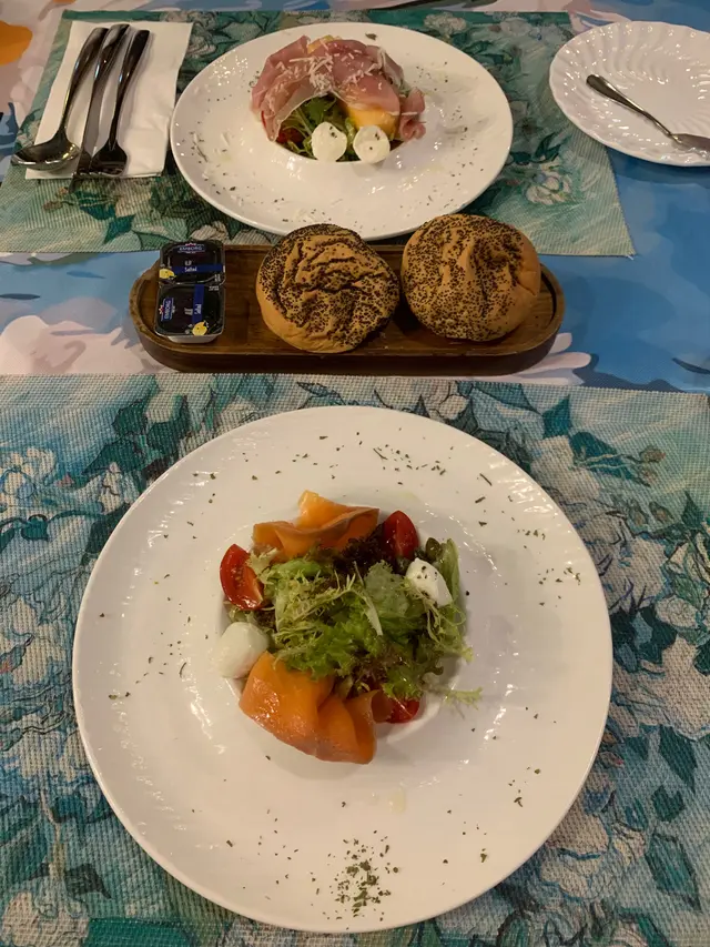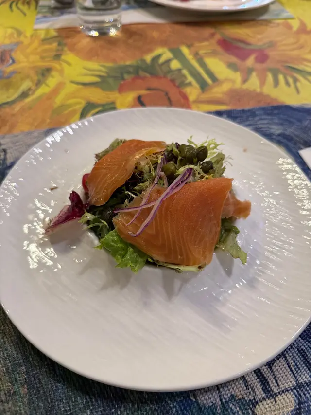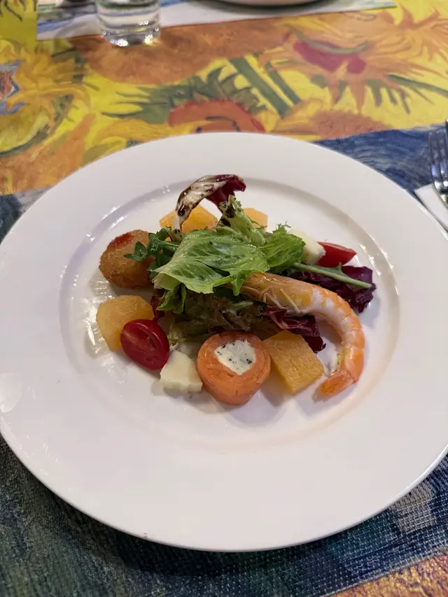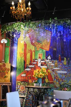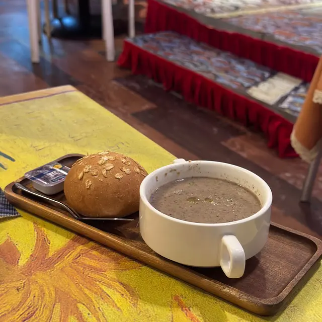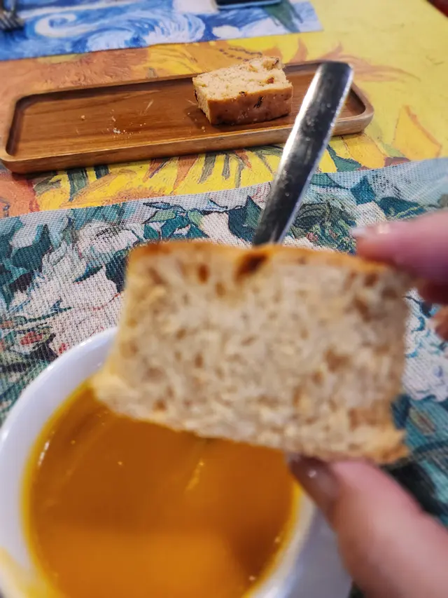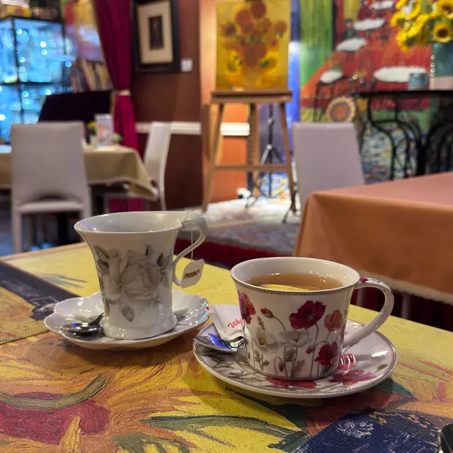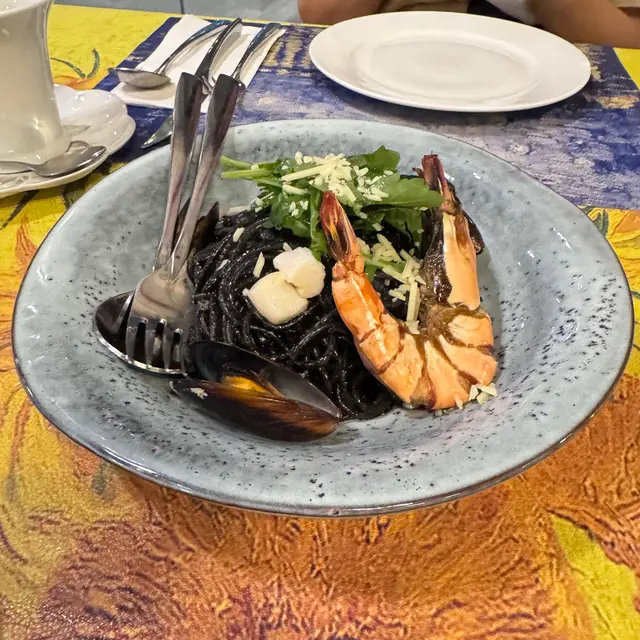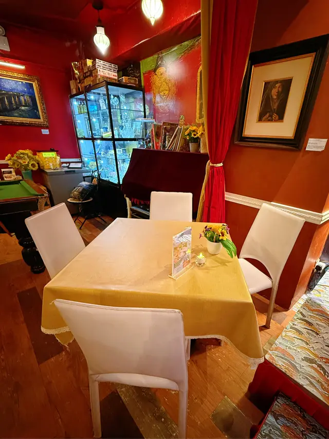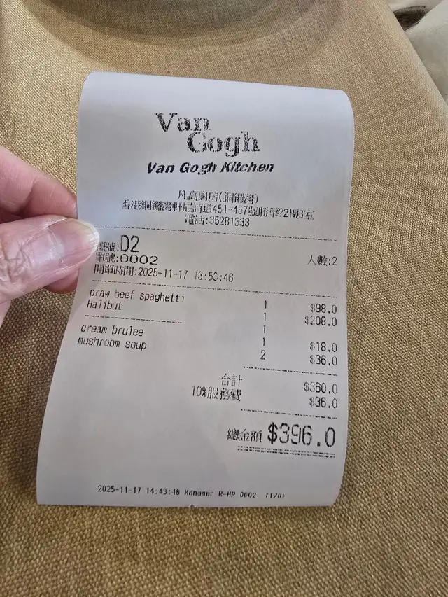 走入凡高廚房,第一眼就會覺得自己行咗入一間小巧的畫廊😍 四周牆身都滲滿梵高嘅色彩元素——星空的筆觸、向日葵的暖黃——連磚瓦都似乎擁有自己嘅故事❤️ 餐廳內仲有個超大嘅「打卡位」,好似原寸放大嘅畫布咁,影相一流,保證可以洗爆社交平台🤭 角落仲擺咗張桌球枱,食完飯仲可以輕鬆玩一局,就好似嚟咗朋友屋企咁自在😚 餐牌方面,最值得一提嘅,係佢哋嘅「梵高畫布蛋糕餐」✅ 上檯嘅係一件雪白似畫布嘅蛋糕,旁邊配埋幾款食用顏料,同畫筆一樣嘅小工具🌟 食客可以親手揮灑即興靈感,畫一朵向日葵,或者簡單幾筆星空,分分鐘畫功唔重要,重點係享受過程😆 ——呢個環節真係勁有趣,食之前已經多咗一份藝術參與感😘 至於主菜推薦,海鮮燴飯飯粒吸滿海鮮精華,口感綿滑得嚟又唔會太「淋」,每一啖都有蝦同青口嘅鮮甜味👍 墨汁海鮮意粉都唔錯🥰 黑漆漆嘅意粉一咬落去居然好清爽,大蝦、帶子相當搶鏡,係一個帶少少神秘氣息嘅菜式☺️ 有興趣可以叫返件朱古力心太軟😘 唔使多介紹,一切開就有香噴噴嘅朱古力味四溢,配埋雪糕食,完美收尾🤤 飲品方面,點名要試雞尾酒❣️ The Starry Night🥳 用藍橙酒打底,撞上檸檬嘅清新,再加梳打水嘅氣泡感,入口微甜清爽,顏色迷人,望住杯入面嘅湛藍,就好似將夜空握喺手中😎 …查看更多