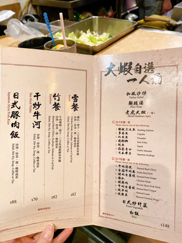 見呢間鐵板燒喺紅磡長期屹立不倒 搵日夜晚終於去咗試 平時見到滿晒座 嗰日一個客都無LOL 然後發覺呢個價錢食到咁飽係好驚喜:0▫️ 大蝦自選一人餐 [$168+1]成個鐵板餐有- 三文魚刺身- 和風沙律- 麵豉湯- 老虎大蝦- 2個main,我揀咗日本帶子同牛肉薄燒- 炒什菜- 炒飯- 紅豆雪糕杯上菜次序好random😂佢上咗炒飯先。。之後先再上三文魚刺身and so on 但係呢個價錢食鐵板燒好抵 三文魚刺身正常夠厚肉 牛肉薄燒好香好多蒜😍飯好大碗🤣但都炒得香嘅日本帶子佢切開咗一半 賣相即刻爭啲但都不過不失了 呢個價錢要求都唔會太高😂如果住紅磡 得閒落樓下想食好啲 佢都係一個好嘅選擇(((o(*゚▽゚*)o)))查看更多