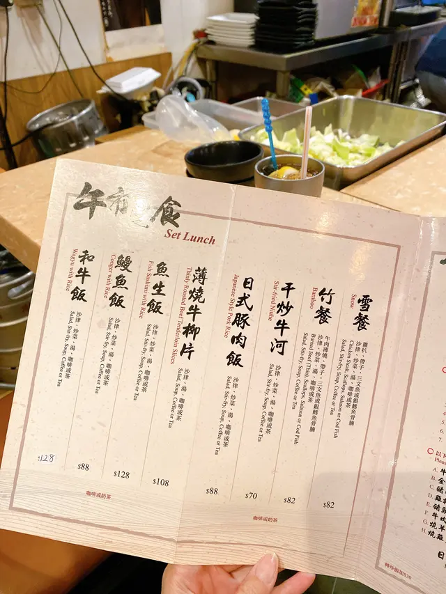 和老婆兩個人,我點的竹餐有牛肉薄燒帶子骨腩,她點的廚師發板有金菇牛卷大蝦雞扒魷魚。整體不過不失,埋單$276沒加一。除了要吐糟奶茶淡然無味,著實奢求不了什麼,但有幾點希望如果老板看到可以考慮一下:1. 骨腩就別用了,吃起來不太友好。如果想盡用食材,骨可以煲湯(魚骨味噌湯),碎肉可以炒飯2. 承上,把白飯改三文魚鐵板炒飯3. 現時竹/雪餐主菜牛雞二選一,然後骨腩可改龍利柳,因應1&2可改成牛雞魚3選14. 因應魚變了主菜,side可以加上魷魚/墨魚等小海鮮5. 可以考慮加入花椒油松露油,或者日本一點山椒油,調味就不會那麼單一,寫出來好看之餘就幾瓶油成本也不高6. 如果人少就盡量位上,感覺會好很多如果按以上都改了,其實食材就只增加了一份小海鮮和幾滴調味油,菜單看上去更吸引,收回加一也可接受。查看更多