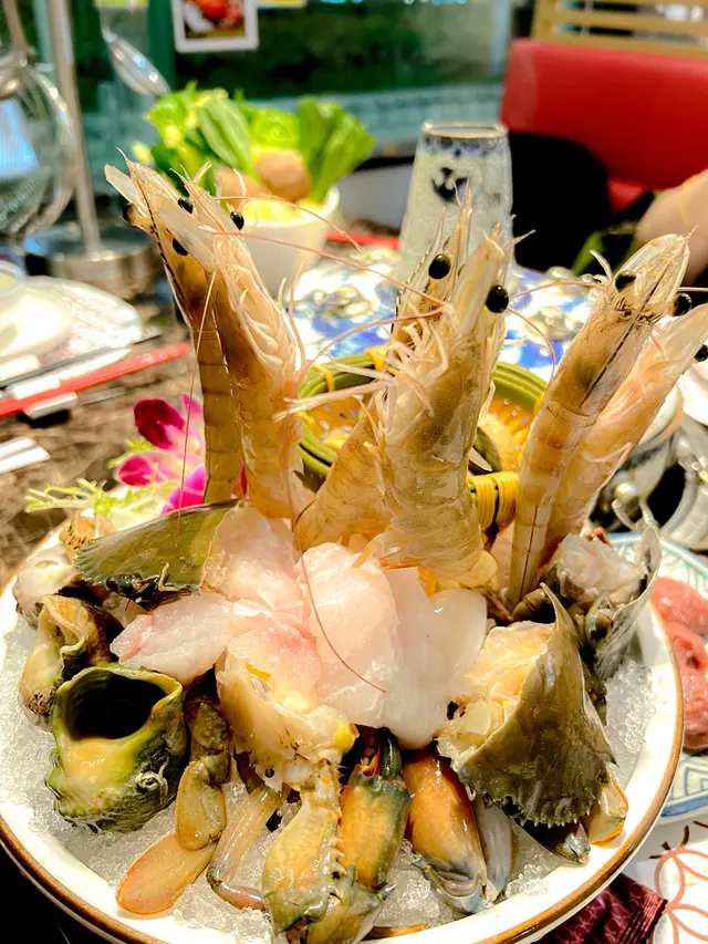 入秋啦🍂又係時候打邊爐。之前經過都有留意到呢一間舖, 原來佢哋除咗做點心小菜,仲有個超抵食嘅雞煲火鍋放題。平日星期一至四只須$298 /位,價錢包左宮廷小食,三文魚刺身,雞煲,海鮮拼盤,火鍋,多款飲品種類任飲,加士伯醇滑啤酒都係任飲傢。仲要食足150分鐘。入到嚟第一嘅感覺係每位店員都好客之道,好熱心詳盡講解店舖有啲乜嘢食,每款項目包啲咩,難得一見。(1)宮廷小食 (可追加)松露蝦多士麻辣鴨血涼拌雲耳椒鹽三文魚頭腩鹽香炸雞翼(2)三文魚刺身雖然唔可以追加,但每一塊都是厚切肥美。(3)雞煲 (可追加)雞件滑溜,比出邊雞煲不會太死咸濃味(4)火鍋湯底都有10款選擇,酸菜魚或椰子文昌雞鍋需要額外加錢,最後我哋就揀咗個養生蓮花鍋,貪佢清清地咁先食得出配料嘅新鮮。另外就係要睇住嗰朵蓮花放落去嘅儀式感🤭(5)環球海鮮拼盤每天會有六款(非追加)當日拼盤有海蝦,廣島蠔,翡翠螺,龍躉件,蟶子皇,花甲。 全部都好新鮮鮮甜。好比一些大集團。配料我會推介以下幾款👍👍手打牛丸:彈牙重牛味極上肥牛:看起來很瘦,但一點都唔嚡口,重牛香味。鮮鵝腸: 一上菜就見到肥膏滿滿非常新鮮,絕不是雪藏品質。鮮雞子:粉紅嫩滑。日本蟹柳:超大條,口感滿滿。水餃:大大粒,滿滿的餡料。飽滿的一餐,店員再送上兩粒雪糕糯米糍,作為完美的句號😍