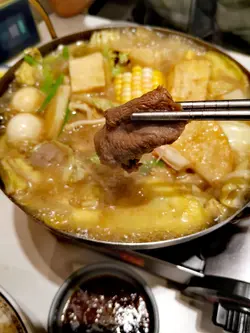 沙茶牛肉鍋呢個真係要2個人食!佢好足料,呢個set真係岩岩好,唔會食唔晒,又唔會唔夠飽。佢有鵪鶉蛋、牛肉、肉丸、菜、金菇….