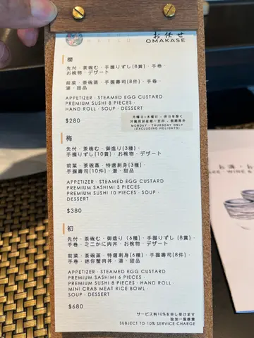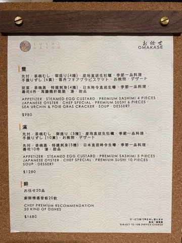 小妹明白飲食業面對艱難時刻🥲亦都唔係食過好多間廚師發辦但呢間omakase真係小妹食過當中數一數二既劣🫠首先上到去𨋢門打開已經係你坐既位😀姐係下一輪既人就會係你背脊後面等位同快餐店排隊等位差唔多😆然後小妹揀咗食「梅」$380個師傅就會不斷說服你去揀食一個貴啲嘅當然我都明白佢地想有一個好啲嘅營業額 完全理解但係第一次光顧 固然會想取一個保守態度🙂當中包括有前菜、茶碗蒸、刺身三款、壽司10貫、湯、甜品🍮枱面上提供嘅餐具 大部份都係仲係濕既包括茶碗蒸個匙羹 食野嘅碟 同埋筷子🥢好似係啱啱洗完就拎出嚟咁🤣仲滴緊水小妹唔知咁樣係咪正常omakase應有嘅情況🙈如果我怪錯佢請大家話我知🥺前菜沙律同茶碗蒸中規中矩跟住想講下壽司 每一件嘅飯都大小不一舍利之間壓得比較實 食落口感一般重點係份量非常之少 好似一隻女仔手指公大少少😅當然唔係同米芝蓮餐廳比較但質素好似小妹去連鎖店壽x郎可能滿足感仲大而且其中有兩三舊魚味非常之重🙈🙈小妹會形容為好腥‼️‼️其實價錢係十分相宜 餐廳景觀亦都好開揚但係好遺憾小妹無辦法再光顧 因為用餐體驗太差大家自行判斷🥲🥲…查看更多