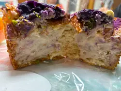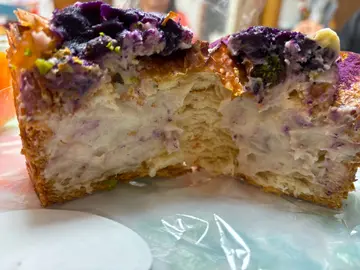 紫芋千層吐司呢個吐司外型唔錯,有紫色蕃薯既味道,亦都有好香既芋泥味,啲千層麵包好有牛油味,食落好有層次感,味道方面都唔錯。開心果冰心包有一種千層牛油味,開心果碎碎很香口,加上香濃湧泉般既開心果內餡,食落真係好豐富,如果喜歡開心果既朋友不妨可以考慮。Read More