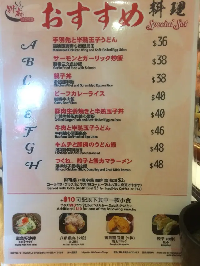 滑蛋雞柳飯 $38 包汽水一杯,下面兩款小食跟餐加$10一款。