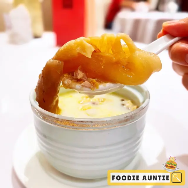 多得好友介紹,已經吃了幾次,昨晚帶家人品嘗,母親贊不絕口。一行四人預先訂了三份雞㷛翅晚餐,再加兩個小菜,食唔晒重有得帶走。雞㷛翅熱辣辣,湯底濃香,魚翅爽滑;乳鴿每位半只、味道一流六個餸選三個:大蝦炒蛋,蝦爽蛋滑、香蔥豆豉雞㷛,超惹味、咕嚕肉酸甜得宜因為四個人只叫了三個套餐,怕不夠吃,再加了粉絲雜菜煲和醬香牛肋骨。套餐仲有荷葉飯同埋蛋白杏仁茶雖然只叫了三個套餐,餐廳服務非常好,送多一碗杏仁茶。對餐廳服務、環境、食物質素都非常滿意。