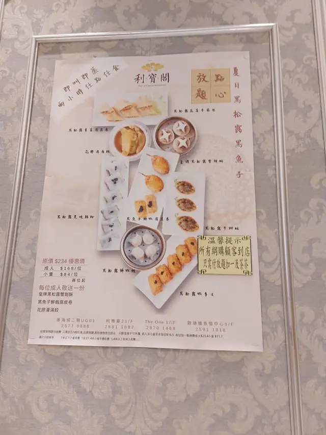 一向對利寶閣都有好感野食快又齊員工服務都好好今晚食埋大閘蟹放題先除左有唔同形式包括:焗;清酒凍:蒸大閘蟹隻隻整出黎味道都好正:好入味再加上真係得呢間可以食哂唔同既味道又可以每次拎2隻:又新鮮同34兩都已經好多膏仲要有任食片皮鴨肉質飽嫩,配埋青瓜甜醬加滑皮味道超夾;仲有好多小菜同可以驅寒的熱薑茶,十分貼心總共食了35隻,好滿足還有蟹膏糯米飯,啖啖蟹膏最後還有精美鮑魚劃上完美句號鮑汁冬菇十分惹味;下年一定會再食…查看更多