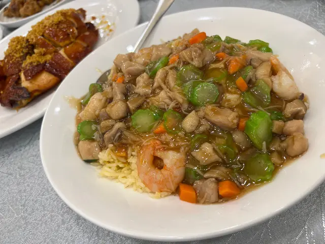 午餐時段,呢度都好多人飲茶,附近都好多辦公室,好多人中午食飯時間黎。我哋就嗌外賣,食佢哋嘅燒味飯。喺樓下外賣嗰度買完上樓上度攞。我哋都好鍾意食佢嘅叉燒同埋燒肉,有雞都唔錯。仲加條菜同蔥油。不過有時中午佢哋多堂食,外賣可能要等一陣。不過佢啲燒味飯真係抵食,先$36雙拼。抵食過明閣好多,而且好似仲好食過佢。如果喺附近返工都可以試吓。我哋已經成為咗常客,唔使行到咁遠買兩餸飯。#hkfoodsuggest查看更多