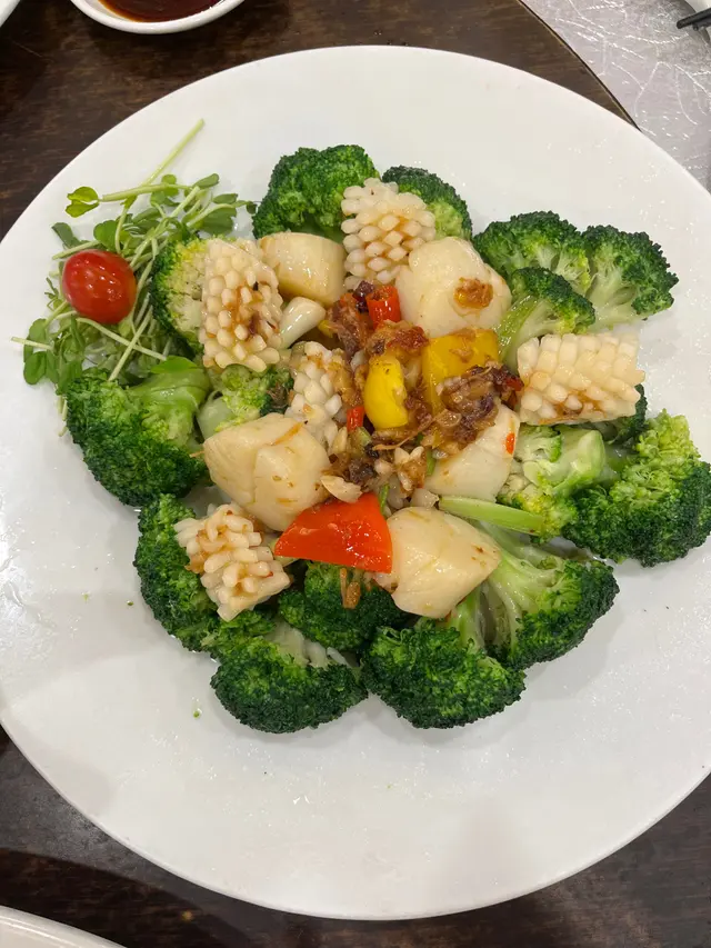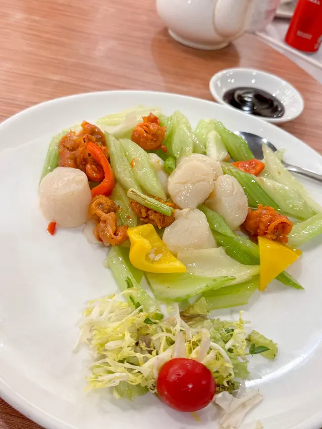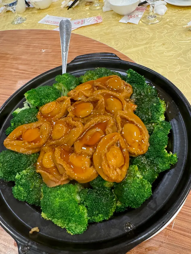 有時要找地方吃家庭聚餐都幾困難,自助餐多數價位高又吃不多。利景酒家 提供了半席 (6位) 的晚飯套餐。✨御品東星斑宴 (HKD 1280) & 茗茶 (HKD 24)茗茶不知是不是已每壺計?! 因為帳單見只計算了2。🐖大紅脆皮乳豬件皮真的很香脆,肉的部份不會都是很肥。✨碧綠珊瑚鮮帶子西芹吃落不會很多渣,帶子肉都厚實。🦐上湯鳳尾大虎蝦球 這個的底是煎米粉來,外脆內軟很香口。蝦都算幾大隻,口感都彈牙,調味亦不會太淡或太鹹。🥣銀湖白雪花膠生翅配料都幾多,口感來說超豐富。味道的話建議加點醋會好點。🐟清蒸東星斑蒸的時間剛好,但新鮮度來說一般。✨蠔皇原隻鮑魚扣鵝掌鮑魚幾有咬口,相對鵝掌很軟腍。這道菜的調味會是整餐最濃的。🥬濃湯雜菌浸時蔬有磨菇、木耳等,配菜心。🐔瑤柱貴妃雞雞肉嫩滑,但那個皮下脂肪有點太肥美 (笑)最後還有很鬆軟的懷舊馬拉糕和紅豆沙。我們八個成人吃這半席都夠飽。查看更多