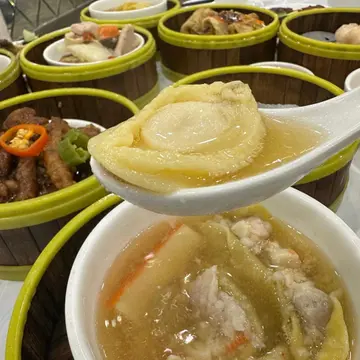 又到大閘蟹季,各大餐廳都推出了不少的套餐,不過說到性價比高的,這間應該可以算得上了,一次能吃到5隻大閘蟹,更有劵最便宜350元就能吃到了,比很多餐廳都要便宜了!而這酒樓屬於利東集團的,旗下幾間分別都有同樣套餐,怕遠的就可以去其他分店了!四皇一后套餐(418元)大閘蟹少有的一次給你5隻大閘蟹,雖然個頭不算很大,母的應該3兩左右,公的會大一點,但膏都很足,吃起來很滿足的!母的膏甘香,公的膏軟糯,肉質鮮甜。精緻三小品有酥脆的燒腩仔,蒜香酸甜的海蜇木耳和蜜汁叉燒,份量不錯。佛跳牆灌湯餃灌湯餃大大隻,而且挺足料的,有花膠,海參,鮑魚和素翅,湯的海鮮味香甜。餃的餡料有蝦肉,蟹柳,豬肉和木耳等材料,挺足料的。古法羊腩煲羊腩被燉得非常軟嫩了,非常入味,也沒有多了羶味,沾上鹹香的腐乳醬,會更惹味。鮮蟹粉扒豆苗豆苗鮮嫩多汁,加上濃香鮮甜的蟹粉,滿滿大閘蟹的香味。生炒糯米飯糯米飯軟糯,加了有香甜的臘腸,鹹香的臘肉,鮮味十足的蝦米,最後加上花生和蔥花,口感更豐富,又解膩。甜品桂花糕吃起來淡淡的清香,味道不會太甜。薑茶熱熱的薑茶挺暖胃的。…查看更多