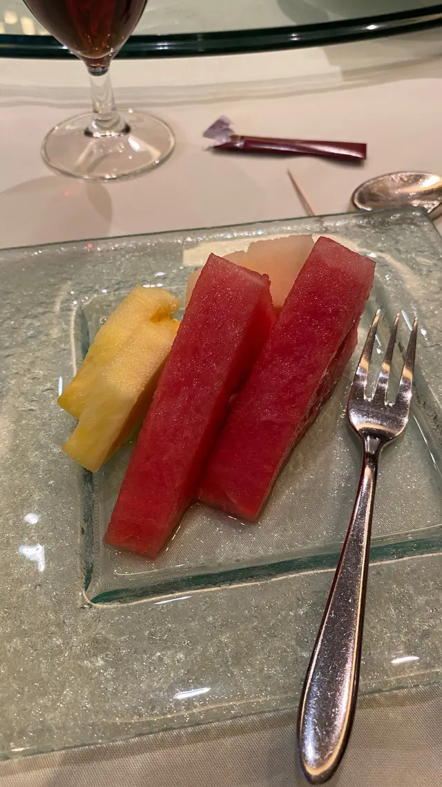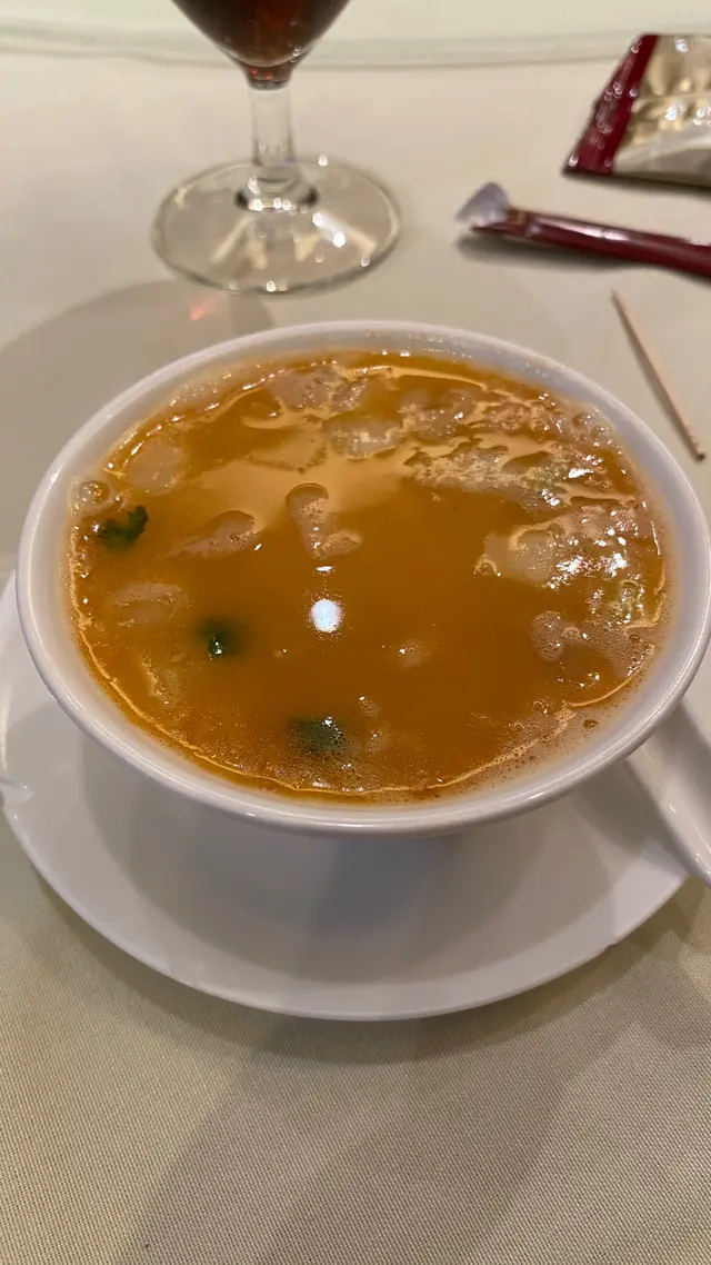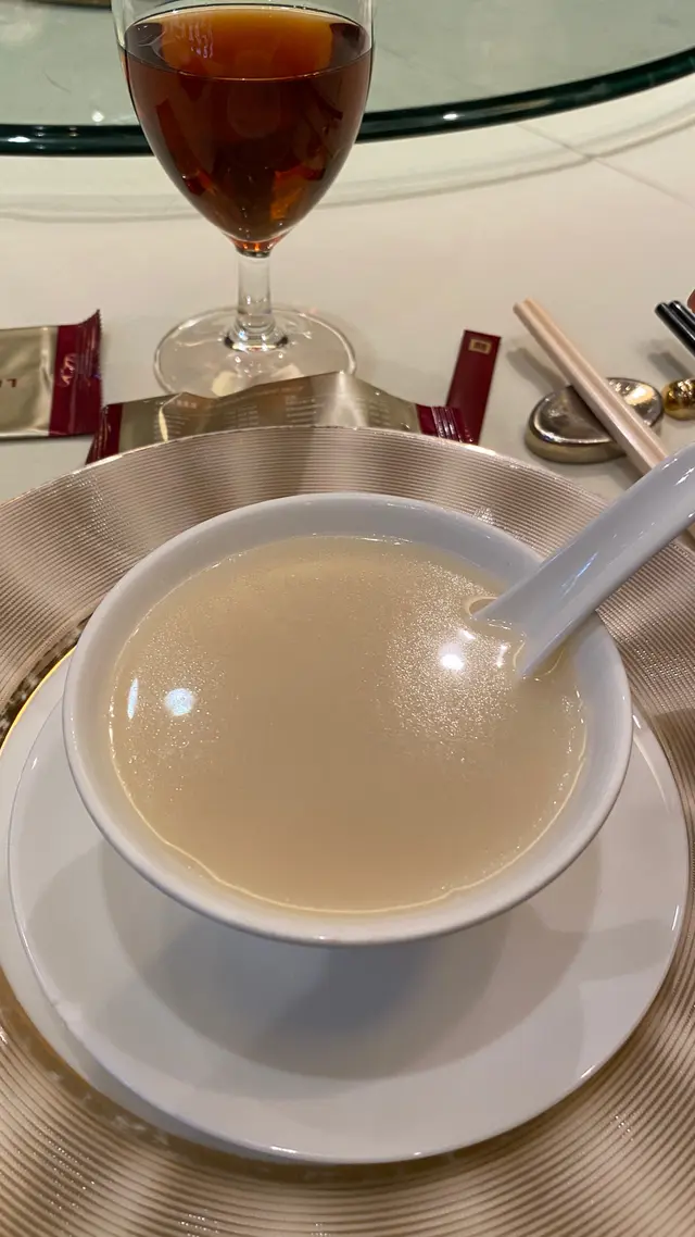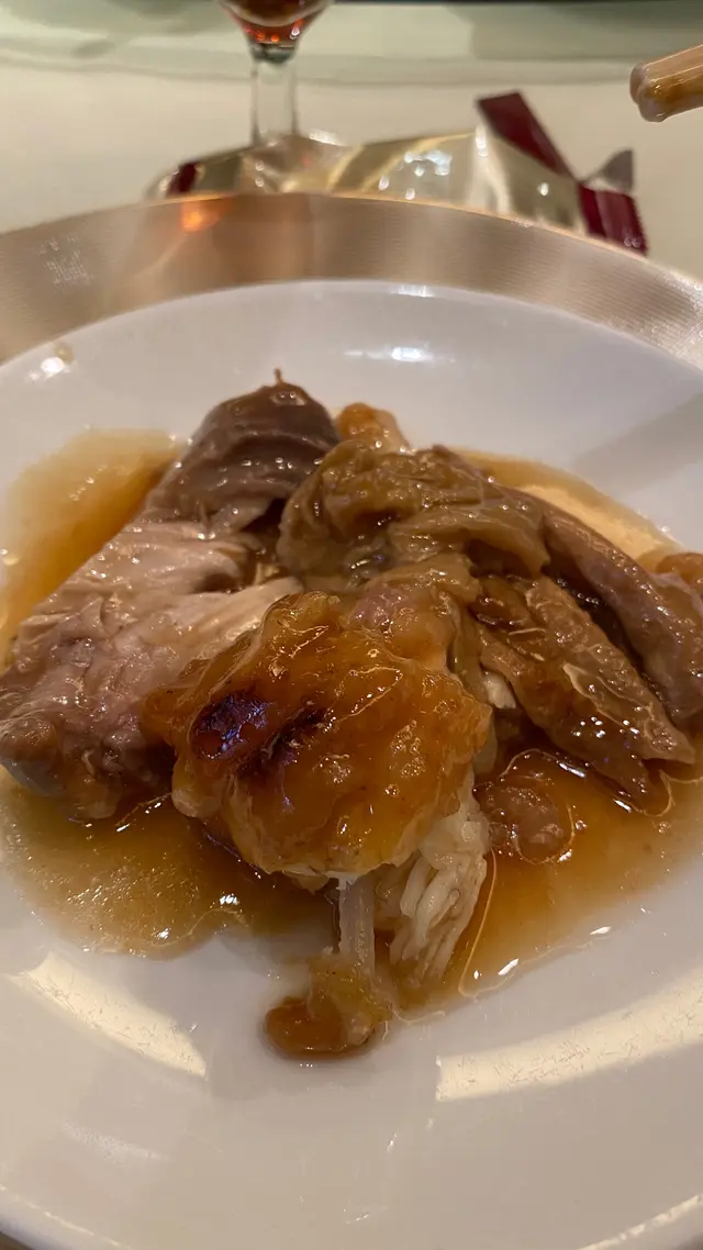 同媽媽慶生,經OpenRice訂燉湯鮑魚餐,CP值好高,連茶位加一人均$545.5。中式Fine dining咁,8道餸,食左2個鐘。一開始係燉湯,燉得好入味,鹹鹹地好開胃,啲肉又唔會話好嚡,連湯渣全清。之後嚟蓬萊素鵝~即係食齋,中間夾住啲冬菇餡,外面係炸嘅,意外地好食。蜜汁叉燒每人兩件,我嗰碟有少少偏肥。鮑魚鵝掌我就唔評論啦,因為我冇食鵝掌,但媽媽話好好食,佢話好滑好腍,不過汁太多有少少鹹(佢平時都食得好清淡)。煎海魚球本身以為係整到好似一個個波咁,但原來係一塊煎魚柳咁嘅樣,冇骨,又係鹹鹹地,但係我都覺得好好食,肉身好腍,同時又有啲煙靭嘅感覺。德州牛柳真係要讚,一入口就知道係正嘢,我食埋阿媽嗰份,兩碟都好tender,如果有Wasabi就正啦!要提埋嘅係糖水:木瓜雪耳,木瓜佢整整到一粒粒咁好得意,比較甜,但係我接受到。整體嚟講每碟餸都好食,份量又多,員工服務都好好,有笑容,好pleasant既生日飯