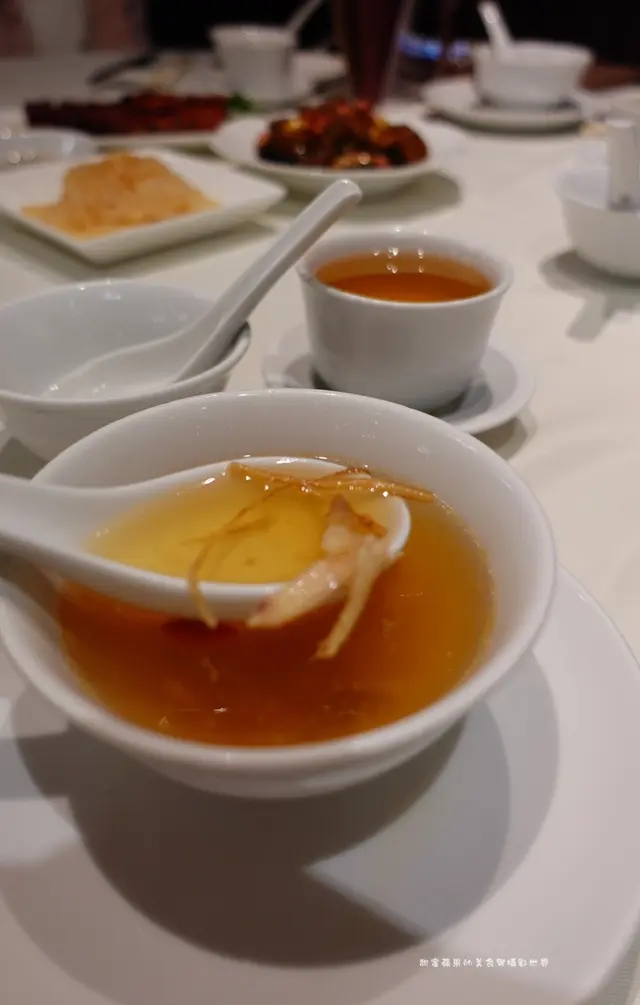 繼續為來自遠方的姐姐準備一連串餐廳,今晚一於品嚐了粵菜,來自老牌連鎖的集團,裝修好像是重新包裝,感覺上不是太陣舊,服務都尚算有禮,當日我們挑選了什麼菜式。。。楝來精選二人餐HK$988迷你盅仔蒸飯,上枱其實真係有點兒迷你,不過不只是白飯,面層還有微味有味肉碎,老公話雖然是畫蛇添足,但評價都唔錯⭐️⭐️⭐️⭐️爽脆海蜇皮,這款海蜇皮你應該是小食的部份,份量其實蠻足夠兩位,冷冷的沒有陳醋也感夠味⭐️⭐️⭐️⭐️蜜汁叉燒(小)餐牌上寫是小份,份量絕對可供兩個人分享,半肥帶瘦色澤與味道也符合個人要求(不錯)⭐️⭐️⭐️⭐️原盅滋潤燉湯,喝得出但有點點人蔘味道,用匙羹試試,原來真的有少少蔘鬚,這一款湯也做得合格⭐️⭐️⭐️⭐️黃金虎蝦球,鹹蛋黃炒過的大虎蝦,雖然得四隻,但每一口都是彈牙鮮美,繼續讚⭐️⭐️⭐️⭐️雙冬栗子炆海魚件,這一款魚每一件都帶有骨,經過油泡後再加入栗子冬菇以及筍,老人家應該喜歡,不過自己就持中平態度(盅仔菜2碗)兩碗猶如白飯份量的炒菜,味道是合格的,如果喜愛菜的人士就不太足夠⭐️⭐️⭐️《沒有照片》四喜烤麩,亦屬於小食部份,烤麩部份自己略嫌甜了一點,可能舊式上海人會較為喜愛⭐️⭐️⭐️鮮果配蛋白杏仁茶,(甜品已經包括在內),而且不敷衍,蛋白杏仁茶做得夠香不太甜,身邊還配上每份兩件的,火龍果以及西瓜⭐️⭐️⭐️⭐️自己單點(海鮮湯過橋加拿大象拔蚌HK$588)放上枱之前,職員拿上枱前給我們拍照及看看,再拿回廚房用上湯灼熟,入口感覺上湯是用龍蝦熬製,感覺帶點龍蝦風味⭐️⭐️⭐️⭐️清蒸東升斑HK$598.也是另外單點的(8至10兩重)上枱很漂亮,足夠四位享用,很鮮魚肉剛剛熟,如果喜歡食魚的人士可能兩位都已經清碟⭐️⭐️⭐️⭐️自選一碟金銀蛋莧菜HK$115.份量足,味道剛好,不太咸正常一道☆☆☆整體上個人覺得好合格,而且以酒樓價錢來說合理,絕對有值得返轉頭之念。茶水費HK$60.另加一服務費!查看更多