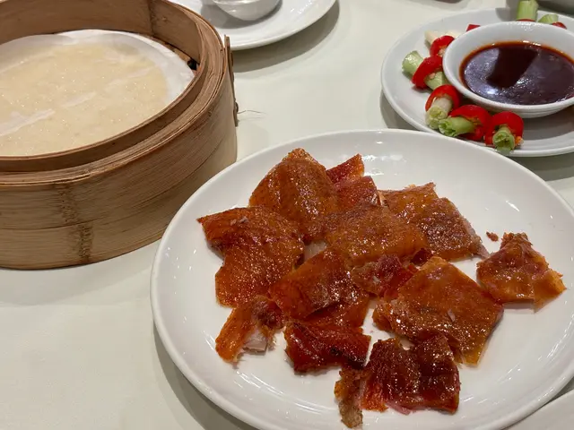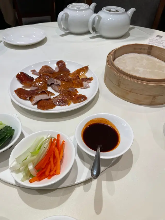 利苑 比較少食又近近地沙田都有就試吓,今日平日十一點多到,等20分鐘就有位入去,今次我哋叫咗個片皮鴨餐加幾個點心,每人不用$250價錢係有少少貴試吓就可以燉湯味幾濃都有4碗份量,不太咸幾好飲。片皮鴨來到有點凍左,份量如果以2人嚟講都夠食,不過配料偏少得蔥炒粉偏濕而且感覺真心偏咸咗啲,最後都冇食晒。甜薄餅幾脆口入面材料多幾好食包類不多唯有叫义燒包都軟熟但料不多茶每位都十五左右,茶味真心有失望,淡味最後要再加先比較好飲查看更多