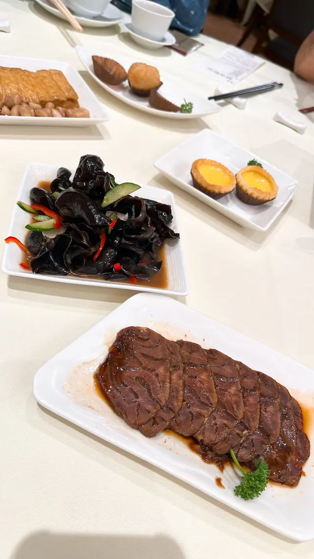 記得以前利苑兩點就接order,唔知係咪因為而家生意差咗,所以就可以2:30入座,都冇叫我哋幾多點截order餐牌冇咩點轉,都唔記得之前嘅價錢我諗分別都係加幾蚊if do 其實每次嚟都係嗌差唔多嘅嘢,嗌咗個五香牛展,今日就覺得冇乜牛肉味,正正常常,純粹係因為鍾意食牛展而嗌陳醋木耳第一次試,因為同男朋友食所以就唔揀酸味手帕青瓜,因為佢好驚啲蒜味喺我個口🤣🤣試吓新嘢係好好喎!原來啲陳醋都好好味,整體而言覺得利苑嘅醬汁味道都唔錯陳醋有質素,唔知咩牌子呢,辣椒醬就係有啲似「魚」均益另外,嗌咗個平時都成日嗌嘅涼拌鴨腎海蜇,走芝麻,落單嘅時候明明要求左,但係廚房做留咗侍應仲詐詐諦放低想走人呢度服務總之都係個句。。。裝修完之後差咗好多!講開又講啲裝修都非常逼夾,枱與枱嘅距離非常近今次嗌傳統嘅蒸叉燒包而唔係雪山叉燒包其實本人覺得傳統蒸麵包比雪山叉燒包好味好多,飲茶梗係要嗌呢啲啦!麵包非常之鬆軟,入面有精緻嘅叉燒粒~ 唔會話食一粒就飽晒,適合一啲為比較細嘅人品嚐唔同嘅食物牛肉腸好味!牛肉比平時酒樓食嘅真神,而且馬蹄非常爽甜可口,讚滷水豆腐都好味!豆腐品質唔錯, 滑得來有豆香:)蝦餃就皮薄餡靚, 冇乜多餘嘅肥膏豬肉撈落去!呢一點其實好重要!燒賣實在,有冬菇,蝦粒,豬肉粒正常發揮但他食咗一啖冇乜特別,。梗係麵包舖新鮮出爐嘅好味啦🤣乾炒牛河雖然好友鑊氣,但係我唔係咁鍾意佢咁油,我哋成枱五個人都覺得佢油膩,而且同厚河粉嘅口感相比, 呢隻河粉我就冇咁鍾意 XO醬蘿蔔糕同埋控油抄手我唔記得咗試,因為太多嘢食了🤣🤣潮州粉果有啲豬肉片,但係入面好油膩,而且配搭冇比傳統酒樓嘅好味,下次唔會嗌牛肉球好大粒,睇落唔會好似平時酒樓咁樣咁多豬油粒肥嘟嘟,實在嘅感覺呢度嘅環境keep得好嘅係有獨立嘅廁所,而且廁所嘅清潔程度OK:)不過服務態度同埋飲茶嘅空間就少咗查看更多