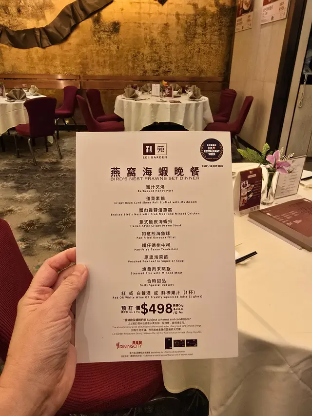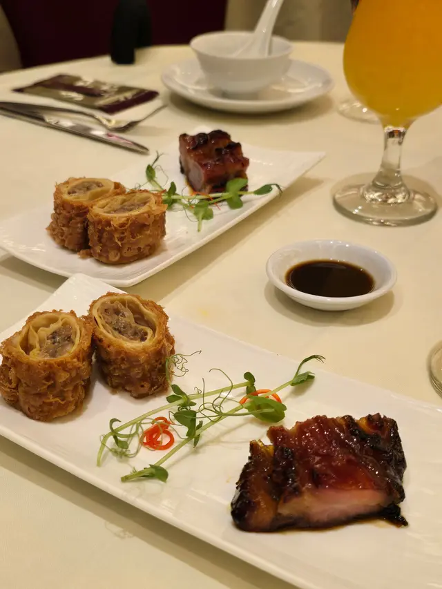 每年香港夏季餐廳周相信是不少熱愛美食的人士熱切留意和期待的,每年都可以在這段日子裡面以相對優惠的價錢試到這些優秀餐廳的美食。今回到了金筷薈餐廳試其餐廳周套餐,限定精選套餐由即日至10月12日在中環IFC和銅鑼灣時代廣場分店供應,晚市是燕窩海蝦晚餐。朋友回港,想吃中菜,於是選擇了燕窩海蝦晚餐作款待。蜜汁叉燒色澤油亮誘人,蜜糖的香甜完全滲入軟嫩的叉燒之中,叉燒屬半肥瘦。蓬萊素鵝的腐皮炸得金黃香脆,內裡的香菇餡料鮮香多汁,口感層次豐富。蟹肉雞蓉燴燕窩羹底溫潤順口,燕窩滑嫩,與絲絲蟹肉和雞蓉同燴,鮮美又滋補。意式脆皮海蝦扒外層酥脆非凡,內裡的大蝦肉質緊實彈牙,搭配西式風味,頗有驚喜。如意煎海魚球火候控制得恰到好處,魚肉鮮甜細嫩。鑊仔德州牛柳煎得肉香四溢,口感軟腍,肉味濃郁。原盅泡菜苗以高湯煨煮,菜苗爽脆。魚香肉末蒸飯溫度足,肉末的鹹香加入挺身的粒粒米飯中,再加點豉油增味,簡單又滿足。甜品是足料綠豆沙。飲品可選紅、白餐酒或橙汁,橙汁是鮮榨的。整體上套餐食物搭配得宜,特別要讚服務,餐堂上由經理到侍應及傳菜的都十分有禮貌👍🏻…查看更多