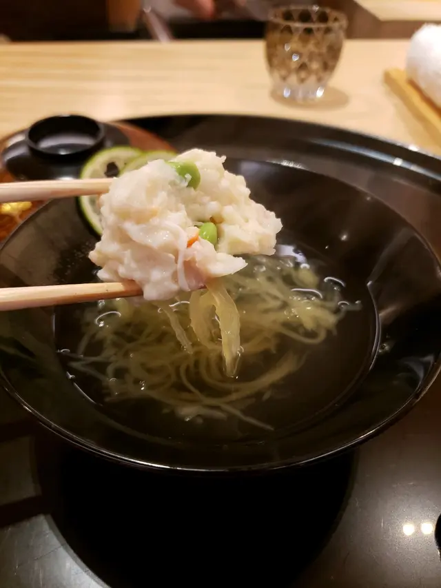 我到訪過這間餐廳,主廚十分友善,對所有客人都很友好。食材非常新鮮,質素上乘。服務生長期在場待命,酒水也是服務周到。場內使用的各樣器皿亦相當具有歷史風格,主廚也很願意回答每樣器皿的來歷。最後只吃了一碗土鍋飯已經很飽了。所有菜式溫度準確,並沒有冷冰冰的菜式,除了雪糕。此食評中提及的最尾一樣指責,毫無邏輯,難以理解何謂第一名?主廚是我見過最友善的日本廚師。
