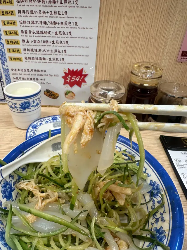朋友話帶我去食一間餐廳,去到先知我之前食過🤣但最後都照食✨餐廳貼咗好多同名人嘅合照👏🏻坐位好少,都要等一等先有位,好彩落單同上菜速度好快🫶🏽🌟皇牌1號餐 $54招牌炸豬扒菜飯+生煎包1隻,套餐奉送豆漿,可無限添飲👏🏻🌟招牌炸豬扒菜飯炸豬扒果然係招牌,外皮係類似用吉列嘅煮法,金黃脆卜卜,啲麵包糠帶出香脆嘅口感,而且個醃料都好入味,超香口🌸菜飯本身都好夠味,但整體有啲乾😗🌟生煎包基本上每枱都會叫😚生煎包熱辣辣,皮薄餡嫩,湯汁多到咬開時熱氣同鮮甜肉汁噴發,令人回味😍個底部較厚身啲,食到個焦香嘅口感👏🏻🌟皇牌5號餐麻醬青瓜雞絲粉皮+生煎包1隻,套餐奉送豆漿,可無限添飲🌸🌟麻醬青瓜雞絲粉皮 $54一嚟到原來都幾大碗,粉皮Q彈滑溜,啲麻醬濃郁帶花生同芝麻嘅香氣,青瓜清甜解膩,雞絲都有雞味,唔會好嚡🧡🌟凍豆漿味道偏淡,唔係好甜,但夠凍🫶🏽店員一得閒就會睇吓邊個得半杯豆漿,然後主動refill🤣-🌟蟹黃生煎包 $38同樣係皮薄,啲蟹黃份量都多😍鮮甜濃郁,內裡嘅肉餡中間再夾住蟹黃,嫩滑多汁,食落奢華又有深層嘅海鮮風味😙…查看更多