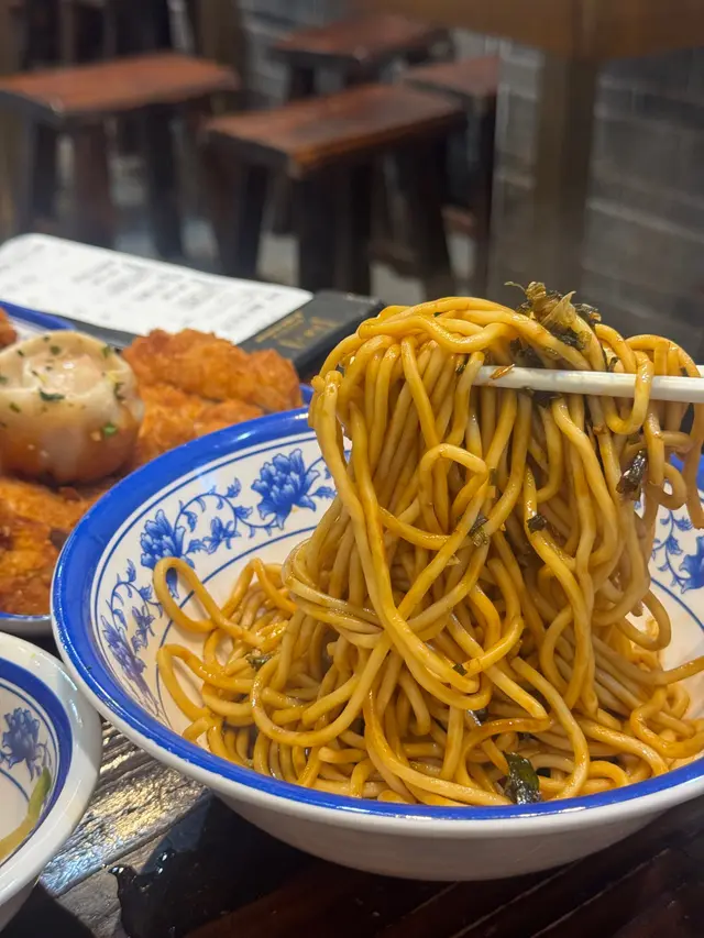 。雞湯小餛飩,湯底用老雞熬制,金黃清澈,飲一啖就知冇加味精,鮮甜到不得了。餛飩皮薄如紙,入面嘅豬肉餡嫩滑入味,每粒都包得均勻,一啖一粒啱啱好