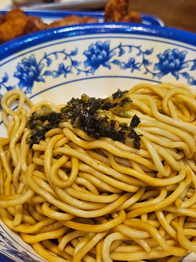 。蔥油拌面,蔥油用新鮮蔥段慢火炸,再落少少豬油增添風味。撈勻後,每一條面條都掛滿油香。麵條彈牙有嚼勁,蔥油香氣十足,食落唔會膩