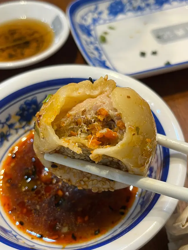 。瀨尿蝦生煎包,用瀨尿蝦肉同鮮肉做為餡料,再落入皮凍增加爆汁效果。瀨尿蝦本身肉質爽嫩,加上生煎包嘅肉汁混合,味道層次豐富,完全冇腥味。如果配埋一碟鎮江香醋,更加提升鮮味,絕對系必點之選