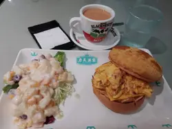 今次喺街坊茶記試咗個超豐富下午茶set,$40幾包齊 芝士鹹牛肉炒蛋菠蘿油 同 自家製雜果沙律,飽足感同味道都滿分~🍍 芝士鹹牛肉炒蛋菠蘿油 一上枱已經聞到濃郁香氣!菠蘿包外皮酥脆,夾住滿滿嘅 鹹牛肉炒蛋,蛋滑肉香,仲有溶化咗嘅芝士拉絲效果,鹹香惹味。凍牛油塊慢慢融化,鹹甜交織,口感同味道層次超豐富~ 邪惡但值得!🥗 自家製雜果沙律 清新驚喜位!雜果新鮮爽沙律醬輕盈唔膩。食完濃味菠蘿油後嚟一啖,即時平衡返,感覺無咁heavy。☕ 跟餐加配熱奶茶,茶香濃滑,完美收尾。環境係典型港式茶記,下午茶時段唔算多人,(溫馨提示:菠蘿油最好趁熱食,凍咗會影響酥皮口感㗎~)…查看更多
