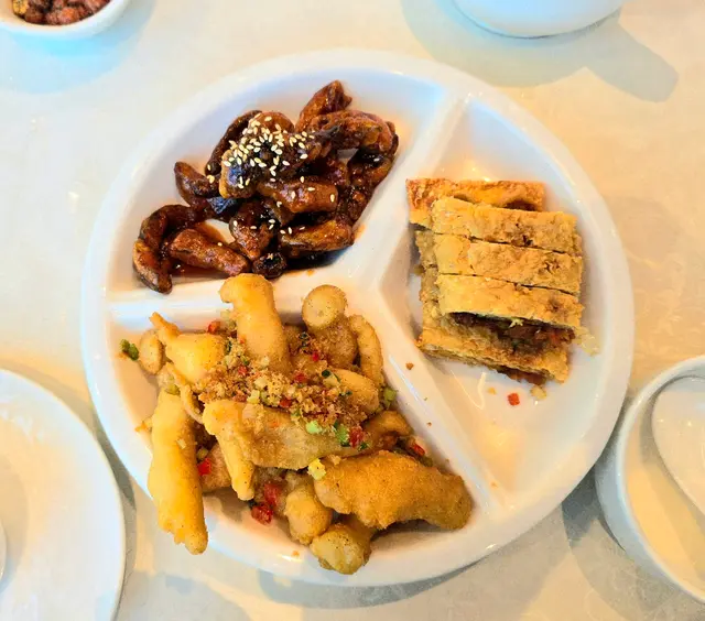 這店的素菜,都是很有名氣的,就連平日不吃素的朋友倒來到,都很喜歡吃~餐廳更有新推出的秋冬滋寶素菜菜單,以及慶祝35週年,惠顧滿$1000送$350現金券,更有$35元的試食價點一款指定菜式,超值~蟹粉小籠包~有4件,餡料是鹹蛋黃,蛋白及素肉,沾上薑醋,味道超像平日吃到的小籠包~蜜汁叉燒~邊位十分香脆,叉燒中間位置則很鬆軟,外層再淋上了蜜汁,味道不錯~金針雲耳雞煲仔飯~超多金針雲耳,配料很足夠,淋上豉油吃後,味道很佳~功德林三拼盤~點了椒鹽鮮魷、脆皮素鵝及無錫脆鱔,可在數款中自選3款,椒鹽鮮魷很香脆,內裡還帶點煙韌感,超像真,而無錫脆鱔剛是烘乾後的香脆,裏上脆漿再炸脆,香脆美味~…查看更多