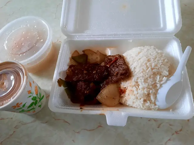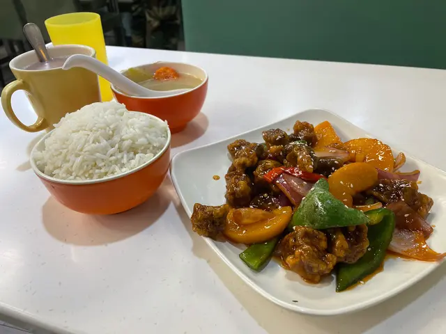 午餐外賣自取打9折,午餐原本係$42,9折後就$38!「蜜椒」即係蜜汁加黑椒,「牛仔柳」應該即係牛柳🙈$38 有個飯,又有湯又有熱飲,已經抵過好多連鎖式餐廳!👍🏻飯既份量同軟硬程度係正常,湯都ok好飲,奶茶都正常!佢個牛仔柳有4-5條,食到牛味,都ok嫩,有咬口,但有少少癡牙(可能我牙縫大)!😂佢個汁食到有蜜汁同黑椒味,撈飯食一流!👍🏻個洋蔥、青椒同個牛仔柳都炒到好有鑊氣!🤤價錢化算又好食,絕對推薦!查看更多