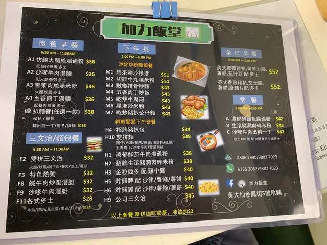 位於「黃大仙」「金鳳街」裡面的港式茶餐廳「加力飯堂」,食店實際位置介乎在「黃大仙」和「鳳德邨」之間,從港鐵站出來也需要走不短路程,才能到達「加力飯堂」所在的「金鳳街」。相反食客如果想從「鑽石山」港鐵站出發,徒步經過「鳳德道」或者行人天橋通道前往「加力飯堂」的話,所需要的時間未必少於從「黃大仙」港鐵站出發少。「加力飯堂」餐廳雖然有分室內和室外檯櫈座位,但是無意中發現「加力飯堂」裡面的電視機沒有播放新聞報導節目,下午茶裡面又有「咖喱牛腩飯」,所以立刻進入餐廳裡面。「加力飯堂」餐廳裡面的食客實際數目不算非常多,所以我光顧「加力飯堂」享用下午茶「咖喱牛腩飯」跟「凍奶茶」飲品過程期間,完全沒有遇上「搭檯」的風險。我無意中發現「加力飯堂」裡面的一般正餐餐牌,恰巧跟「下午茶」茶餐的餐牌裡面,都有製作和提供一款名稱叫做「海南咖喱牛腩飯」的食品。正餐版本裡面的「咖喱牛腩飯」食品正式名稱,叫做「海南咖喱牛腩飯」,「海南咖喱牛腩飯」售價賣港幣五十五元,屬於中等水平的價錢。至於「加力飯堂」「下午茶」茶餐版本裡面的「咖喱牛腩飯」食品,名稱雖然都是幾乎一模一樣,兩者售價看似相差無幾,只是相差港幣七元而已。但是「加力飯堂」不同版本的「海南咖喱牛腩飯」之間其實有兩個最大分別,第一個分別就是套餐裡面飲品的實際價錢,正餐版本「海南咖喱牛腩飯」配熱飲要港幣六元,配凍飲則需要港幣七元。「下午茶」茶餐版本「海南咖喱牛腩飯」裡面還包括有套餐飲品,凍飲飲品只需要加港幣兩元,選擇熱飲飲品跟餐的話,食客不需要加錢就可以享用到。「加力飯堂」正餐和下午茶版本「海南咖喱牛腩飯」的另一個分別,就是「海南咖喱牛腩飯」的實際份量。今次我選擇了,享用下午茶版本的「海南咖喱牛腩飯」。結果「加力飯堂」廚房把「下午茶」版本的「海南咖喱牛腩飯」製作完成,我才發現「下午茶」茶餐「海南咖喱牛腩飯」,白飯只有一小碗的份量。就連「加力飯堂」下午茶茶餐「海南咖喱牛腩飯」裡面屬於「咖喱牛腩」餸菜的那一部分,驟眼看下午茶「咖喱牛腩」只有一小碗的份量,實際上卻份量不少。雖然「加力飯堂」把他們廚房製作的「海南咖喱牛腩飯」名稱裡面,加入了「海南」兩個字,但是「海南咖喱牛腩飯」的「飯」實際上,都只是一般的白飯而已。其實我最初知道「加力飯堂」裡面有「海南咖喱牛腩飯」食品的時候,曾經有想過「海南咖喱牛腩飯」裡面的「飯」會否是用「雞油」或者「黃薑」炒成的有味道飯。但是實際上「加力飯堂」「海南咖喱牛腩飯」的「白飯」裡面,廚房看似沒有加入任何調味料去炒「白飯」,所以「白飯」裡面實際上沒有太明顯的味道。跟著就開始試試「加力飯堂」實際份量只有一小碗的「海南咖喱牛腩」,「海南咖喱牛腩」裡面有頗為明顯和感覺濃厚的辣味,把「馬鈴薯」和「牛腩」實際味道都染成「辣味」。或許是因為餐廳的實際名稱叫做「加力飯堂」,「加力飯堂」裡面的「加力」英文叫做「Garlic」,「Garlic」其實即是「大蒜」,所以我還隱約在「海南咖喱牛腩」裡面,食到疑似的香味,香味混雜在「咖喱」辣味裡面。「加力飯堂」只有一小碗份量版本的下午茶「海南咖喱牛腩」實際製成品裡面,其實還有不少實際口感軟腍程度只屬於一般水平,可以炆得再腍一點的「牛腩」肉。至於下午茶「海南咖喱牛腩飯」裡面的「馬鈴薯」實際口感,很明顯地比「牛腩」炆得更軟腍,「咖喱」汁裡面的辣味已經完全滲透進入「馬鈴薯」。而且我發現「加力飯堂」下午茶「海南咖喱牛腩飯」咖喱醬汁實際質感,比我原本預計來得比較稠密,稠密質感的「咖喱」汁,把濃厚辣味都濃縮收藏在醬汁汁液裡面。另一方面,「加力飯堂」下午茶的「海南咖喱牛腩飯」套餐,食客除了加上港幣兩元,可以隨著「海南咖喱牛腩飯」另外選擇享用凍飲飲品一杯之外,還隨著套餐而獲得例湯一碗。「加力飯堂」下午茶裡面的例湯,其實是一般的中式湯品「青紅蘿蔔瘦肉湯」,湯裡面還可以找到味道偏向比較甜,口感頗腍的「青蘿蔔」跟「紅蘿蔔」。除了「青紅蘿蔔」之外,「青紅蘿蔔瘦肉湯」裡面的「豬肉」也有不少,或許可能是「豬肉」裡面的鮮甜味配合「青紅蘿蔔」,間接令「青紅蘿蔔瘦肉湯」實際味道變得頗甜。「加力飯堂」下午茶裡面的食品飲品整體上味道感覺都頗為濃厚,「海南咖喱牛腩飯」裡面有濃厚的「咖喱」香味和辣味,「青紅蘿蔔瘦肉湯」裡面有「豬肉」跟「青紅蘿蔔」甜味。跟著說一下「青紅蘿蔔瘦肉湯」裡面的「青紅蘿蔔」實際口感,「青蘿蔔」跟「紅蘿蔔」的口感感覺頗為軟腍,加入有脂肪的「豬肉」,整碗「青紅蘿蔔瘦肉湯」的口感頗腍,所有材料都幾乎可以食清光。就連「加力飯堂」下午茶裡面的凍飲飲品,「凍奶茶」飲品實際份量頗大,「凍奶茶」飲品實際色澤呈現奶黃色,我直覺覺得「凍奶茶」裡面加入了很多甜味「淡奶」。至於「凍奶茶」飲品裡面的實際味道,也充滿來自「淡奶」裡面的甜味,還有來自「糖漿」裡面的甜味,把「紅茶」裡面的茶味都稍為掩蓋過去。不過「凍奶茶」飲品裡面的冰塊,隨著時間流逝而逐漸融化,或多或少地沖淡「凍奶茶」飲品裡面的「淡奶」甜味和「紅茶」茶味,所以「加力