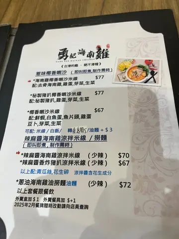 勇記海南雞上環分店位於蘇杭街,是一間深受本地食客喜愛的港式中餐小店。中午即使在人潮鼎沸的時段,也見不少人排隊約15分鐘等待入座,可見其人氣之旺。這次品嚐的是店內人氣招牌之一—海南雞椰香喇沙米線。雞肉滑嫩嫩口,帶有鹹香味,質地柔軟且多汁,入口即化。不管是雞肉的鮮嫩度還是調味,都令人在味覺上感到十分滿足。米線的硬度適中,爽滑彈牙,完美襯托喇沙湯的濃郁與椰香。喇沙湯湯底味道香濃且有層次,椰香襯托出泰式風味,又不會掩蓋海南雞的鮮味,令人回味無窮。份量方面亦相當足夠,對於中午饑腸轆轆的食客來說十分夠飽肚。整體來說,勇記海南雞不僅保持了傳統海南雞的細膩口感,更通過喇沙米線為菜式增添新意,使得港式經典菜式在口味上有了創新和升級。無論是愛好港式美食的街坊,還是尋求新潮風味的年輕一族,都值得一試。值得一提的是,店鋪空間較小,午餐高峰時段需預計排隊時間,但質素與味道絕對讓等