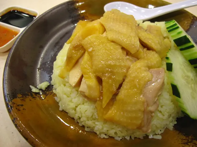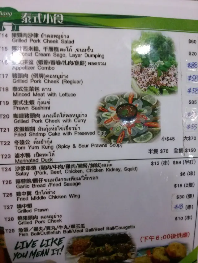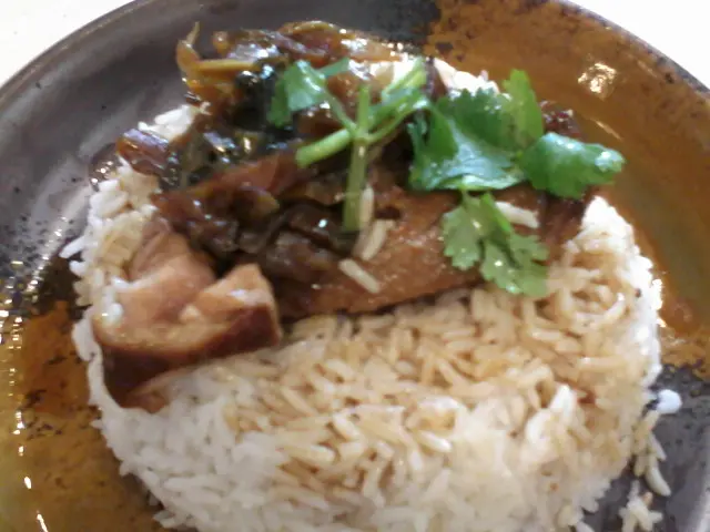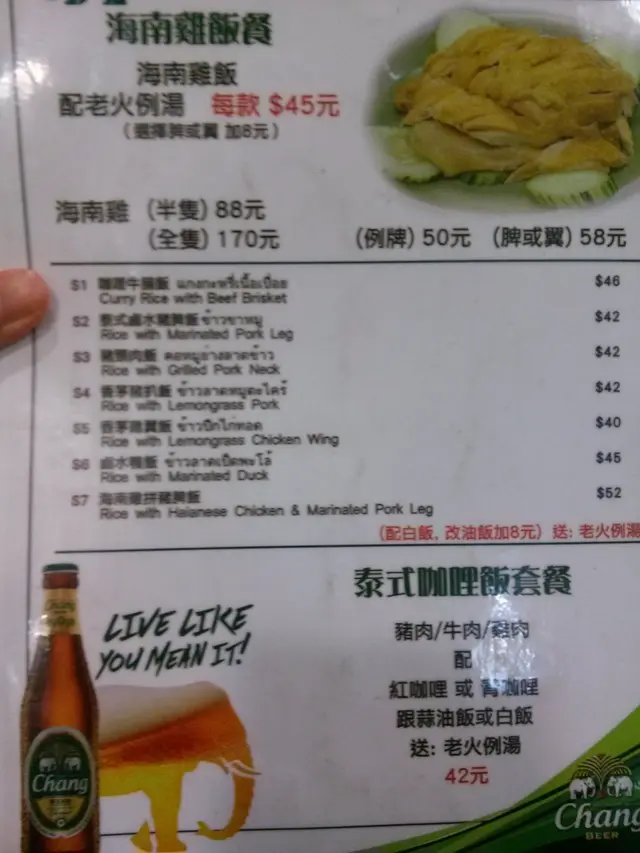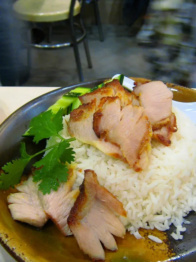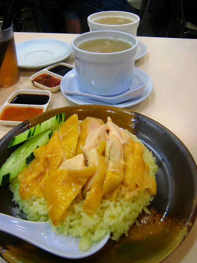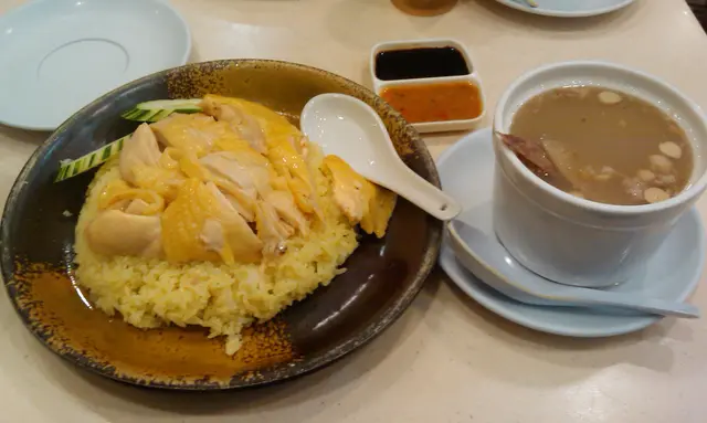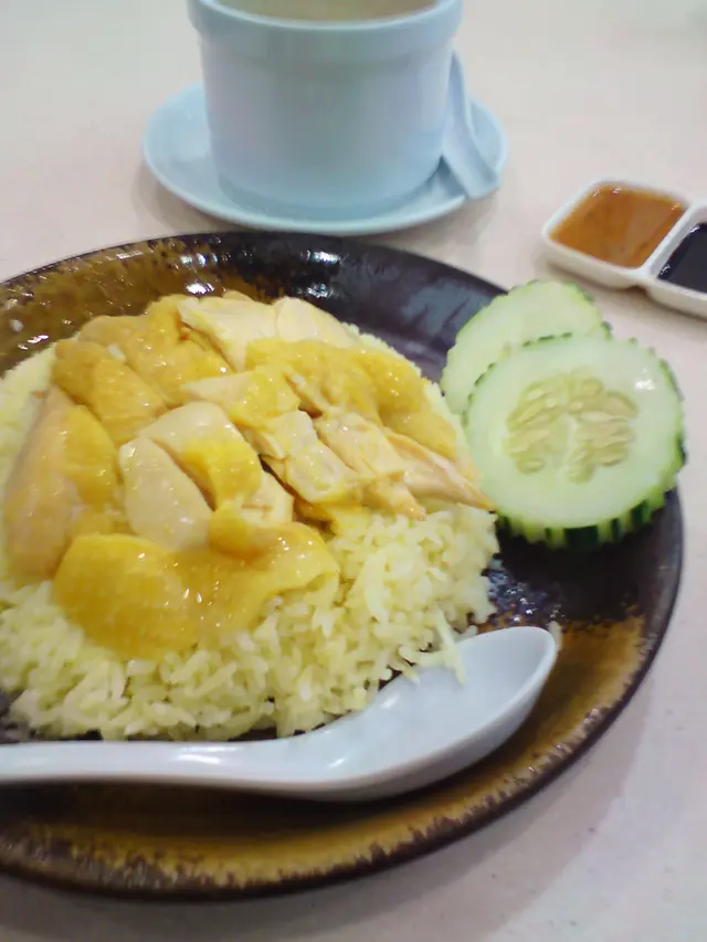 This restaurant has been around for ages and because it seems to be there all the time I end up trying other restaurants first.When you walk past this restaurant they have lots of cooked chicken hanging by the windows so their chicken is probably quite good.I finally tried it because the one I wanted to try was closed.Ordered the chicken rice with flavoured rice and the pork knuckles with rice set which comes with coke.★☆★☆★☆★☆★☆★☆★☆★☆★☆★☆★☆★Soup:The soup came with the chicken rice set. Although it was Chinese soup and not Thai wintermelon and chicken soup it still tasted nice.There was no msg in it.★☆★☆★☆★☆★☆★☆★☆★☆★☆★☆★☆★Hainan style chicken with rice:The rice was a little too soft but the colour was lovely and yellow, the taste of the rice was aromatic and not too greasy even though it had chicken oil.The chicken was good as well, there were no bones and after removing the chicken skin there was clean chicken meat left! As for the chicken it tasted fresh and tender.Although this may not be authentic chicken rice but least I got chicken meat and not fat and bones.★☆★☆★☆★☆★☆★☆★☆★☆★☆★☆★☆★Roast pork knuckle with rice:The rice had lots of marinade sauce over it so it went a bit soft. The pork knuckle skin was extremely soft and stickly and the pork knuckle meat was nice and tender.The pork knuckle was boneless too.There was generous pickles on top to balance out the heavyness of the pork knuckles.★☆★☆★☆★☆★☆★☆★☆★☆★☆★☆★☆★Sauces:There was soy sauce and Thai chili sauce for the chicken and the Thai chili sauce was quite nice because there was lime juice and herbs in it.★☆★☆★☆★☆★☆★☆★☆★☆★☆★☆★☆★Sataysn the way out the satays on the mini griller looked appetizing as well as their sauces.★☆★☆★☆★☆★☆★☆★☆★☆★☆★☆★☆★…查看更多