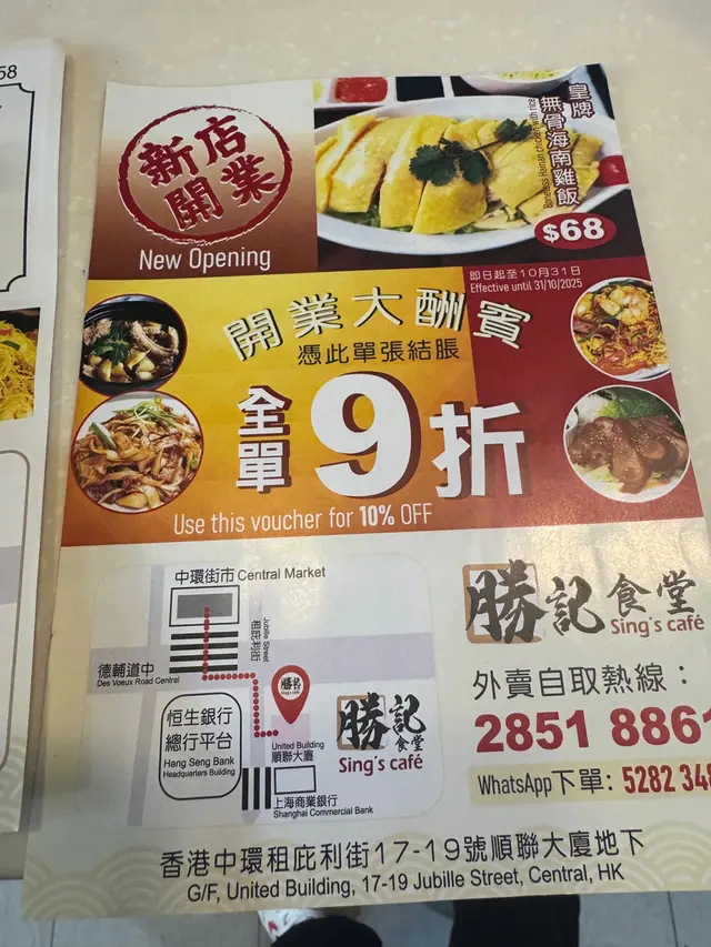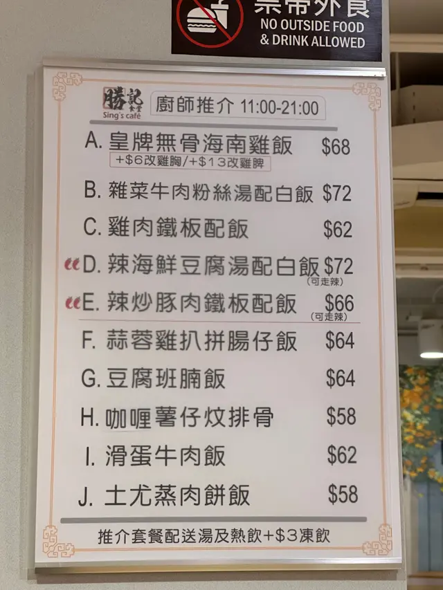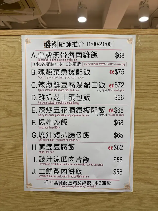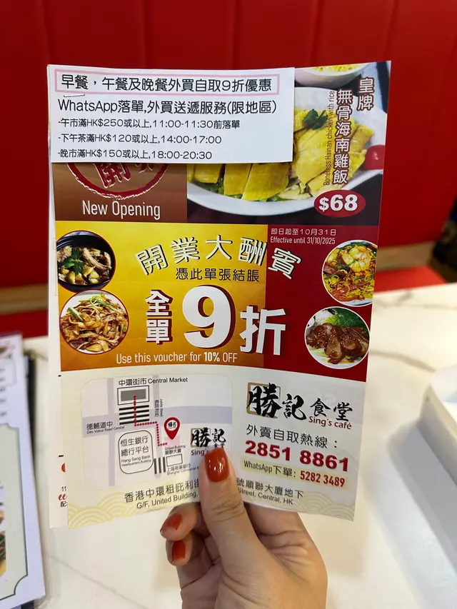 👉諗住喺附近求其食個快飯,行過見新開就試吓。。。地點都好方便,喺中環恆生銀行總行對面。📌 皇牌無骨海南雞(半隻) $98 ~ 大大碟2人份,加個📌油飯$15 剛剛好。。。 雞件皮脆肉嫩,夾住啫喱層,肉汁豐富滑捋捋⋯⋯🤤📌 番茄芝士豬扒焗飯 $65 ~豬扒碎上,厚薄適中,方便食用。蛋炒飯底焗起都粒粒分明,飯面舖上厚厚芝士,一拉即有拉絲效果🥳📌 香炸蜜汁雞翼(2隻)配炸薯條 $36 ~ 6點前仲可以叫下午茶餐。雞翼比較細隻,波浪薯條炸得香脆,全部即炸熱焫焫⋯⋯抵食!凡點主食都可以$18加配小食,點咗📌泰式酸辣鳳爪 $18、📌蠔油菜心 $18,都好好味😋🏬 勝記食堂 (中環)🚦中環租庇利街17-19號順聯大廈地舖…查看更多