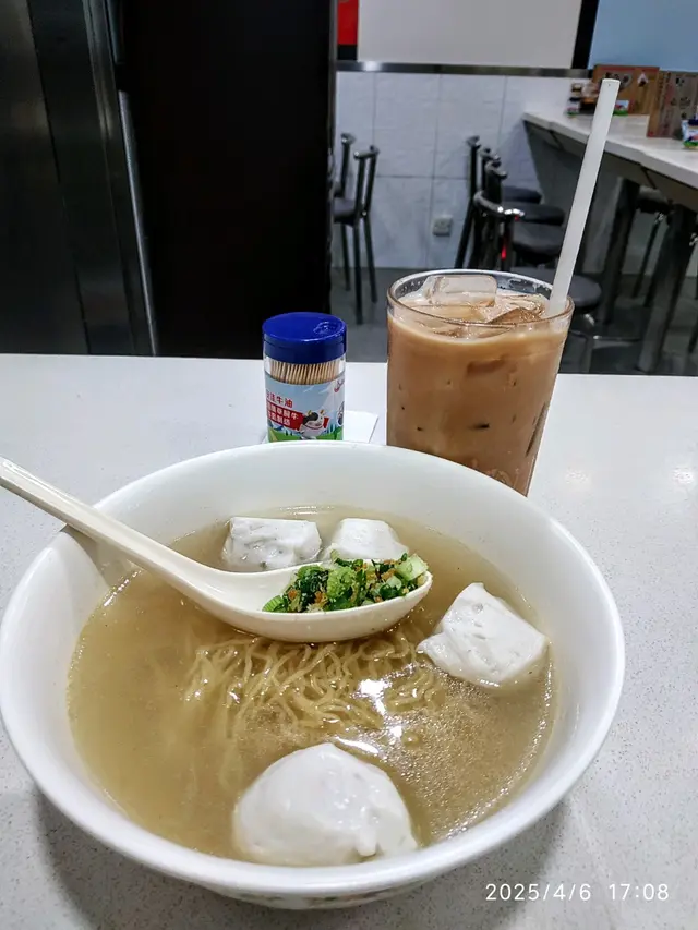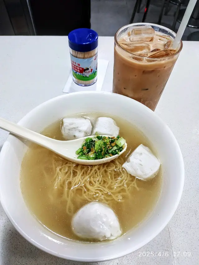 下午茶A餐~爽滑魚蛋幼麵跟凍奶茶