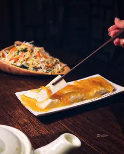 今次同朋友去咗京菜 - 北京老家,呢間係灣仔合和中心,位置幾方便,菜館設計以北京「老胡同」為既念,由門口,樓梯同內𥚃裝飾都很中國風,最特別有張枱有中間養了金魚,感覺就好像在北京四合院內的魚池一樣好得意。我哋見到有超值二人套餐 ($680),有以下菜式,二人套餐份量都唔少。🥢 雙喜拼盤 1️⃣ 雞絲粉皮2️⃣ 上海烤麩兩款拼盤份量都大份,味道唔錯,很有上海小菜風味。🥢 招牌烤鴨半隻 很香脆的鴨皮,鴨肉肉質保持嫩滑又多汁,配埋熱烘烘的薄餅,青瓜條及京蔥再點醬一齊食,份外滋味。🥢 京味酸辣湯(2盅)酸酸辣辣的酸辣湯味道唔錯,又多料,好飲。🥢 糖醋魚片甜甜酸酸糖醋魚片,魚片又幼滑唔錯。🥢 熗炒手撕椰菜炒椰菜好爽脆又清甜。🥢 小籠包(2個)小籠包皮都算薄,餡料又飽滿又美味,小籠包內滿滿上湯又爆汁,好味。🥢 宮廷狀元糕 呢款比較傳統中式糕點,唔係成日有得食,用了香甜金絲棗製作,熱辣辣狀元糕超鬆軟,天然甜味無負擔又很香棗味道,喜歡吃棗的朋友值得一試!!再叫多一籠了小籠包同蔥爆羊肉已經夠食。🥢 蔥爆羊肉呢個有驚喜,炒得好香又惹味蔥爆羊肉,羊肉又沒有太大臊味,用嚟送飯好正😊。…查看更多