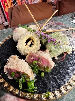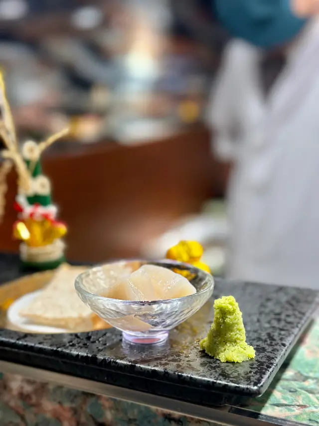 位於九龍城的這家日式串揚專門店,以道地大阪風味為主題,主打刺身與串揚的完美搭配,佐以燒酎怡情,讓人恍如置身大阪街頭。店內空間雖不大,但佈滿大阪街景牆紙,搭配整潔高腳吧檯座位,營造出濃濃的東瀛氛圍。還有廚藝超高、親切和藹又健談的主廚老闆渡邊先生,把他在香港40年煮食的經驗和我們娓娓道來,讓我們親身經歷了一次賞心悅目的大阪串揚之旅。蒜頭木魚漬蒜片爽脆入味,木魚香氣十足,十分開胃。中濃汁檸汁配椰菜椰菜蘸着滑順果香的日式中濃汁與清新檸汁,能巧妙化解炸物膩感。七味魚翅馬面魚乾火候精準,佐以沙律醬更顯風味。秋刀魚二重奏一款製成酥脆卷物,外層輕薄脆口,內裡柔軟;另一款則為鮮美刺身,蘸特調醬汁凸顯魚鮮。串揚即點即炸的串揚粉漿薄如蟬翼,完美鎖住食材原味:厚切宮城縣和牛牛舌:口感爽彈,肉香濃郁。沖繩直送苦瓜:清苦回甘。高知青椒仔:清新爽脆。福井里芋:綿密細膩。時令海鮮七品盛合擺設十分漂亮!包含鰻魚、沙椎魚、魷魚、帆立貝等,其中磯煮鮑魚彈牙鮮甜,炸衣輕薄不膩。極上刺身杯三文魚滑潤、赤身、帶子甘甜,佐以爆漿三文魚籽與米飯,層次豐富。南高梅茶漬飯以柔軟米粒吸收湯汁,梅子酸香點亮味蕾,熱辣辣的非常好味!千德純米大吟釀吃完不同的串揚後,我們叫了這瓶大吟釀淺酌。這款呈現琥珀光澤的純米大吟釀,開瓶即飄散優雅果香,入口時酒體綿柔滑順,收尾則帶有淡雅米麴的回甘。清澈酒液真能洗去油炸物的餘膩。整體而言,主廚對食材堅持與技藝講究,搭配親切互動,成就了我們今晚一場視覺與味覺的雙重饗宴。這裏還有不同的午餐定食、omakase 午餐及晚餐等。下次我也要來再試吓呢。…查看更多