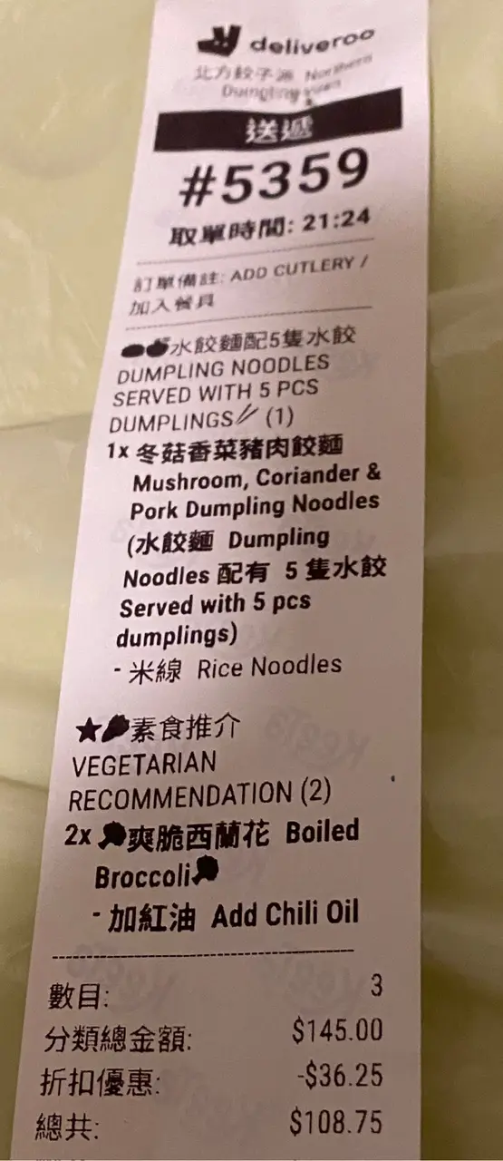 顧名思義、幫襯北方餃子源一定要食餃子今天在外賣平台點了一份 冬菇香菜豬肉餃麵 的外賣,整體表現相當不錯:🍜 冬菇香菜豬肉餃麵(包含 5 隻餃子)餃子部分:冬菇香菜豬肉餃係典型北方餃,大大隻、皮唔會薄但餡料會好足好飽滿,香菜與冬菇的香氣與豬肉的鮮味融合得恰到好處,唔會切得太碎而又能食到一粒粒香菇。每隻餃子的都好足料又飽滿,煮得剛好、送到時都沒有破皮,內餡的汁水豐富、質素高,每一口都能感受到滿滿的北方味道。餐廳有跟醋及辣醬,但個人建議不妨加$8加紅油,餃子沾上紅油蒜粒,層次進一步提升!米線與湯底:米線口感滑順,湯底帶有味精,所以將西蘭花浸一下湯能提升鮮味,能吃辣的當吃完餃子後可以考慮將餘下紅油倒進碗內,體驗另一種湯底的味道。🥦 配菜:灼西蘭花 (2客)灼西蘭花燙得剛剛好,保持了翠綠的色澤與清脆的口感,是一份健康又解膩的小菜。📦 包裝與送餐速度包裝整潔,每份餐點都密封良好,避免了湯汁灑漏。外送速度非常準時,食物送到時仍然保持溫熱,體現了餐廳的專業與用心。…查看更多