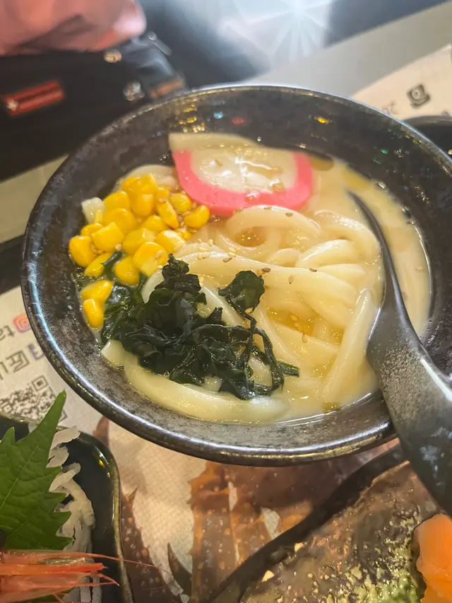 後上嘅烏冬非常之有誠意!仲有啲昆布 日式魚蛋同埋粟米 非常豐盛!不過湯底鹹咗少少 🤏烏冬就靚質素彈牙